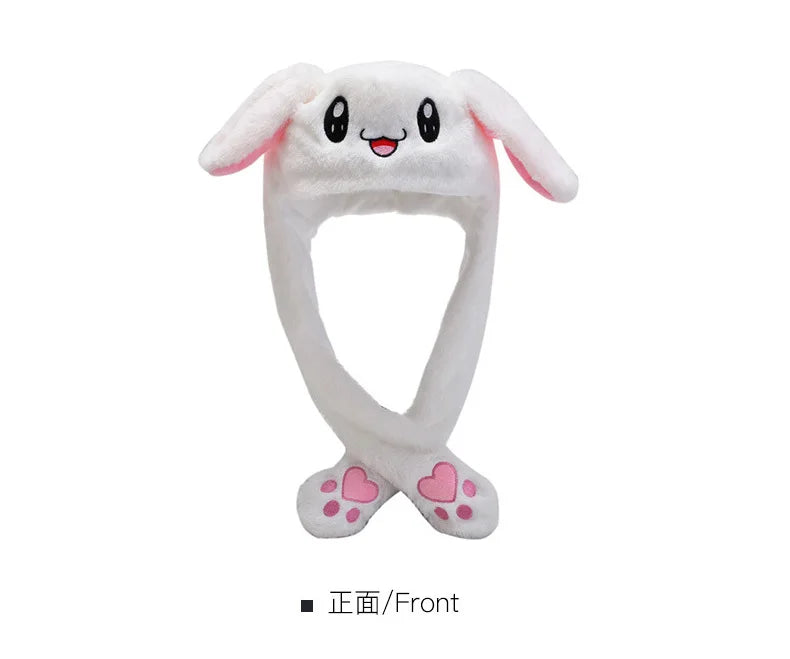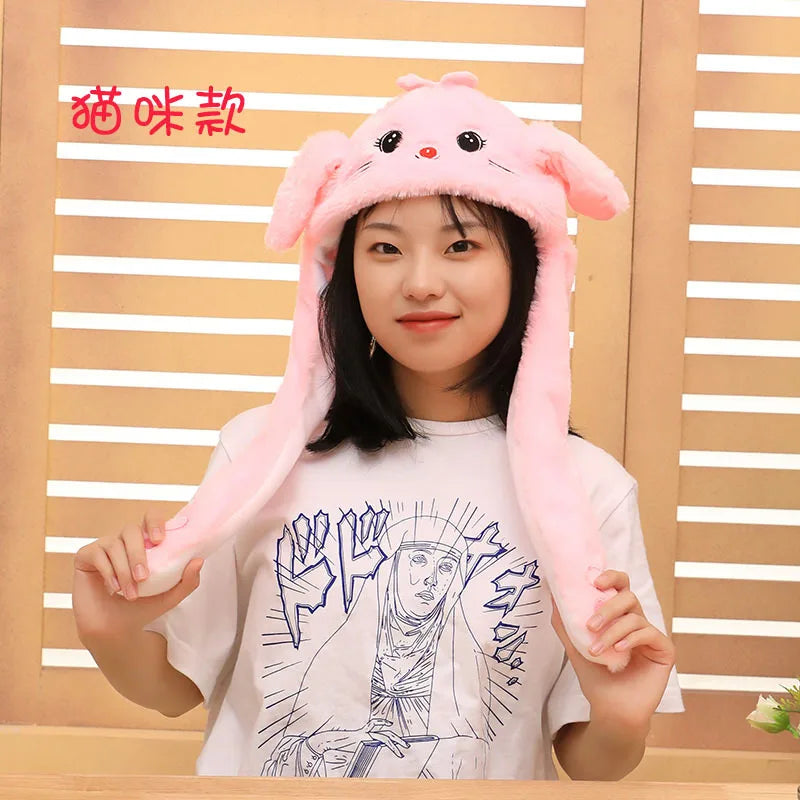 Plush Moving Rabbit Ears Hat Funny Hand Pinching Airbag Magnet Soft Hat Controllable Long Ears Cute Animal Gift Rabbit Ear Hat