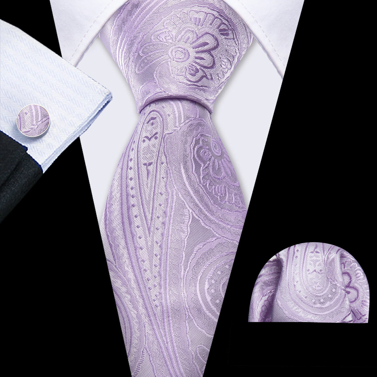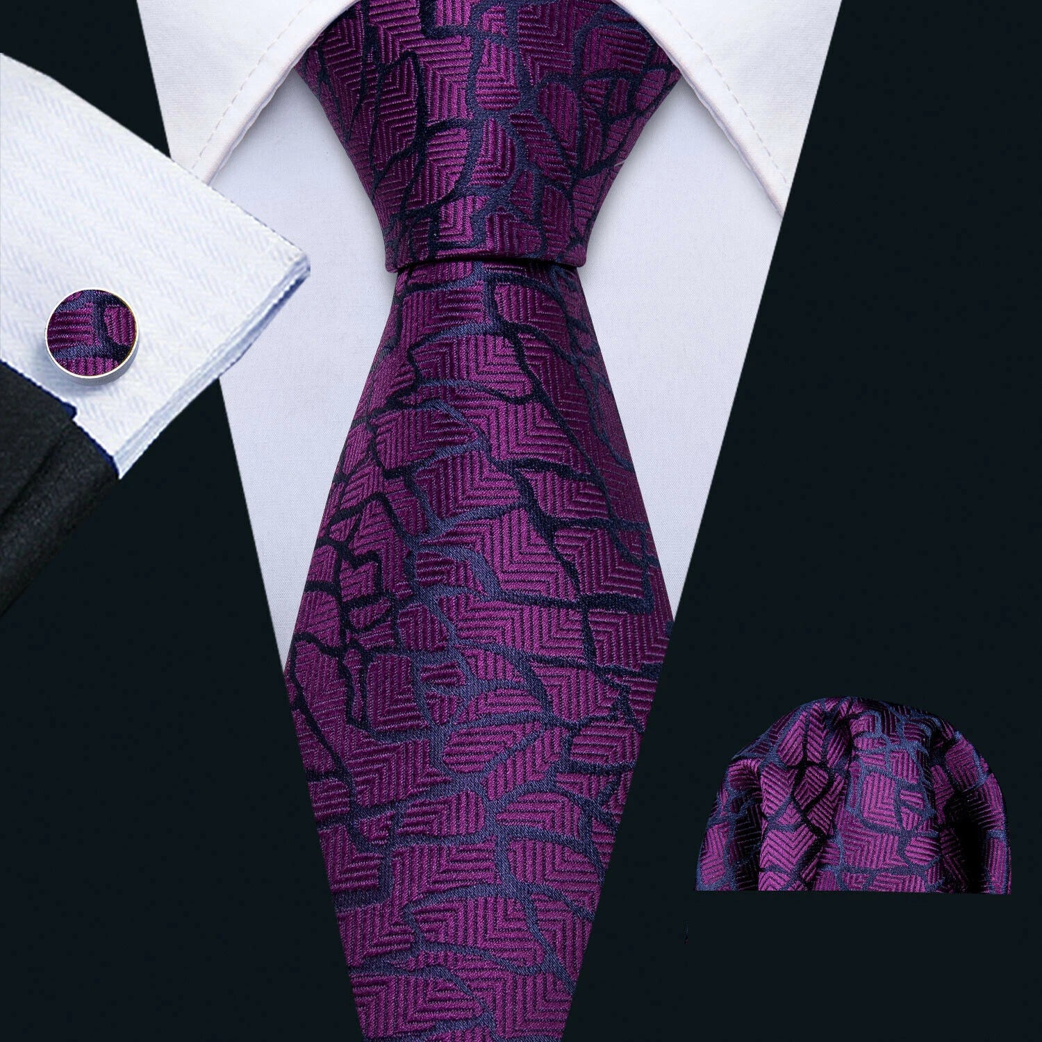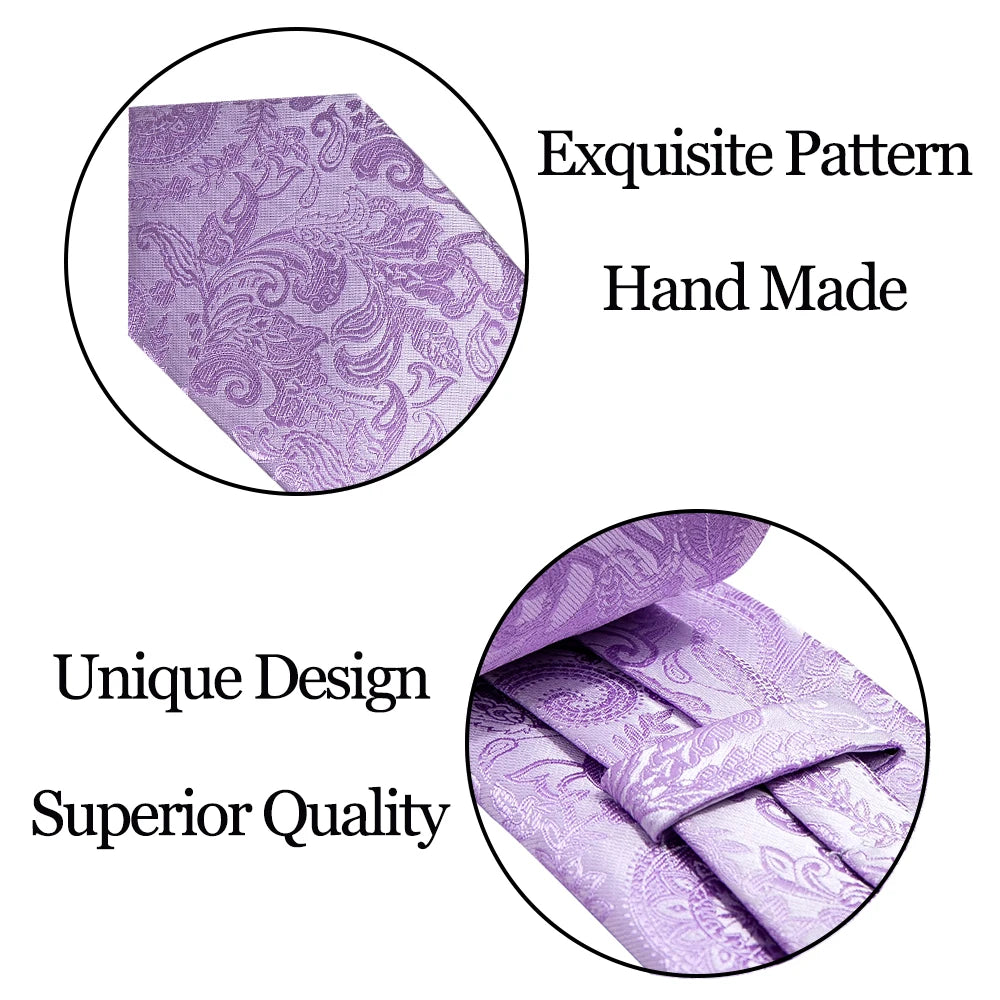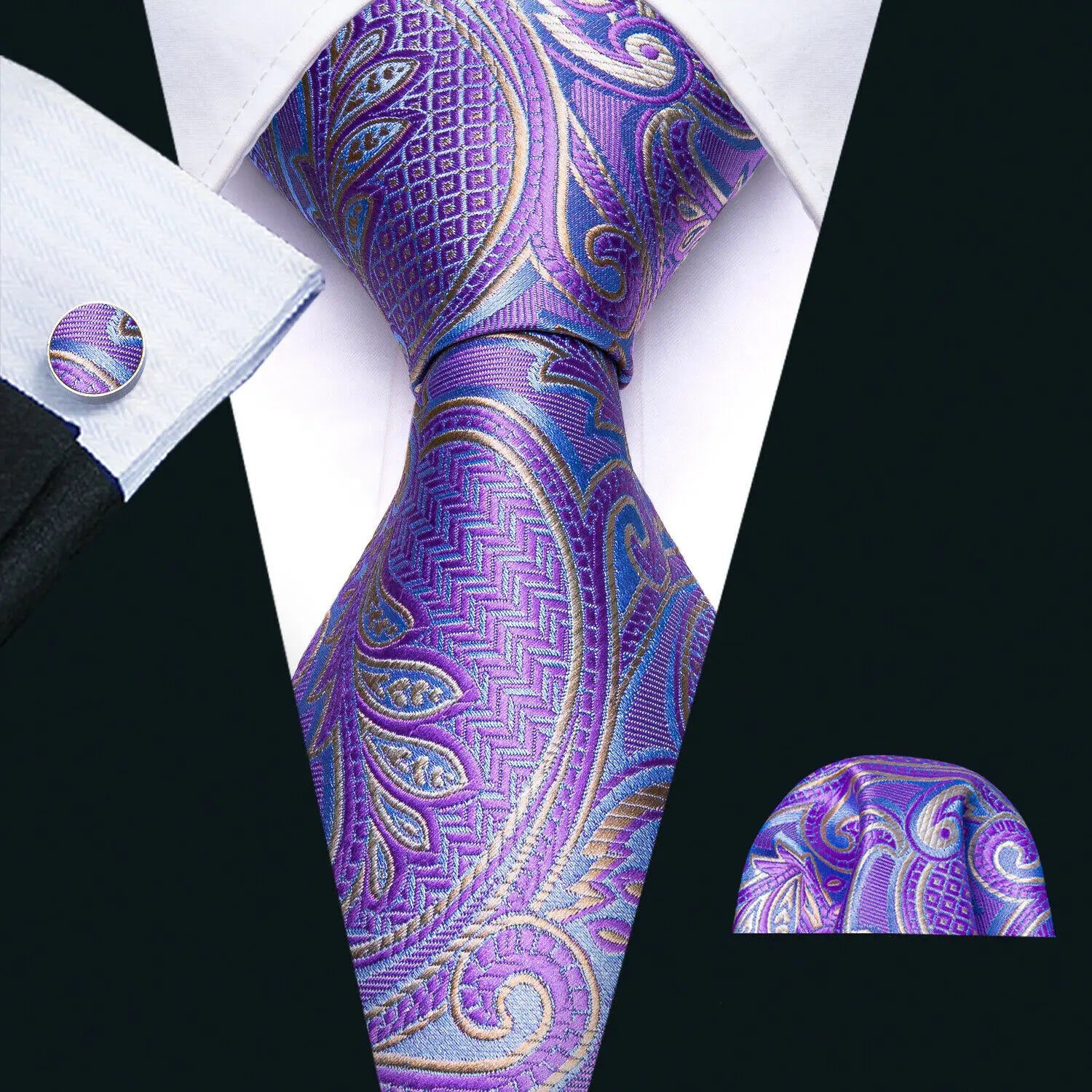 Male Gift Silk Men Tie Set Purple Violet Solid Paisley Striped Wedding Business Tie for Man Necktie Handky Cufflinks Barry.Wang