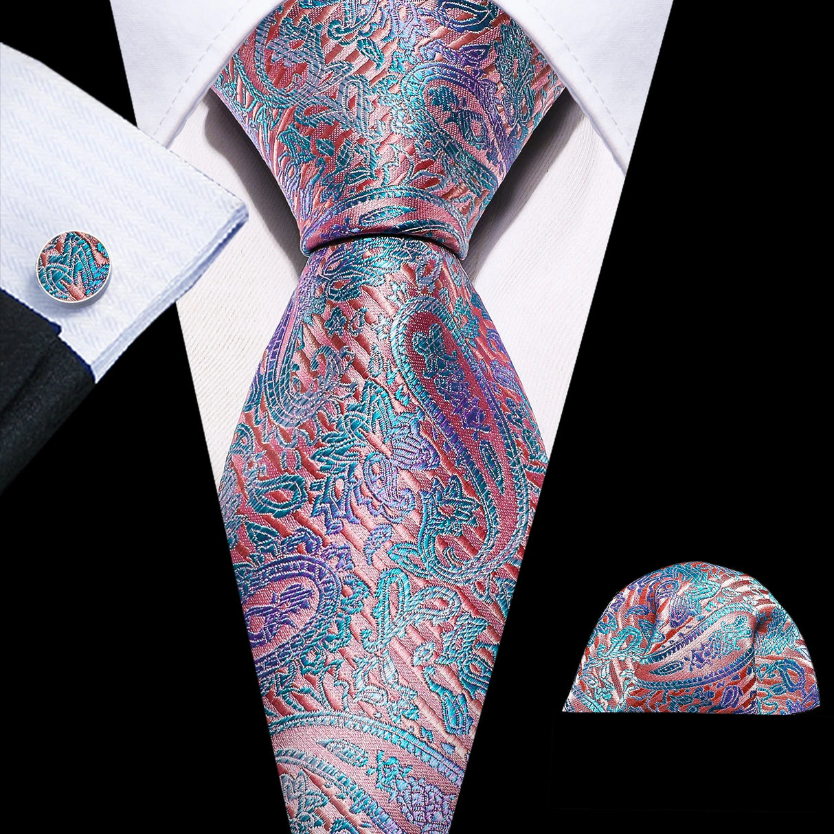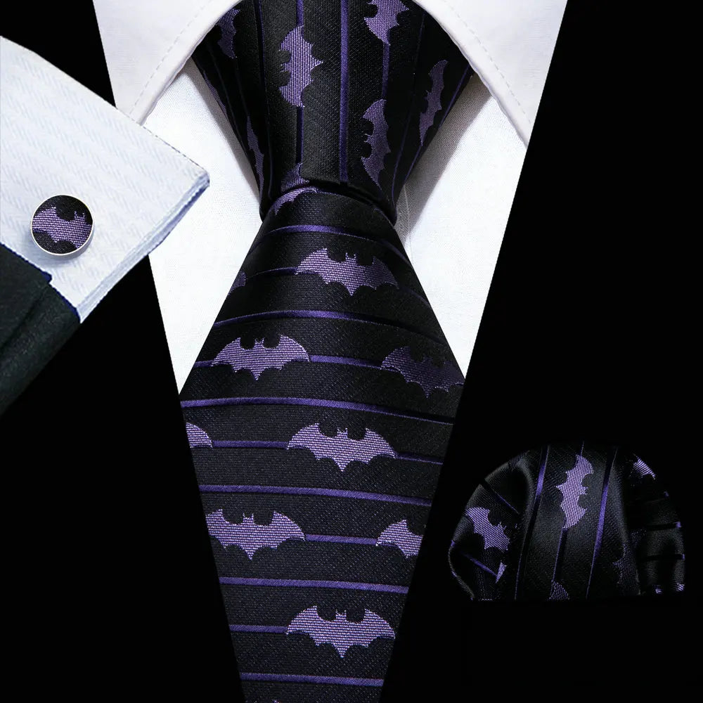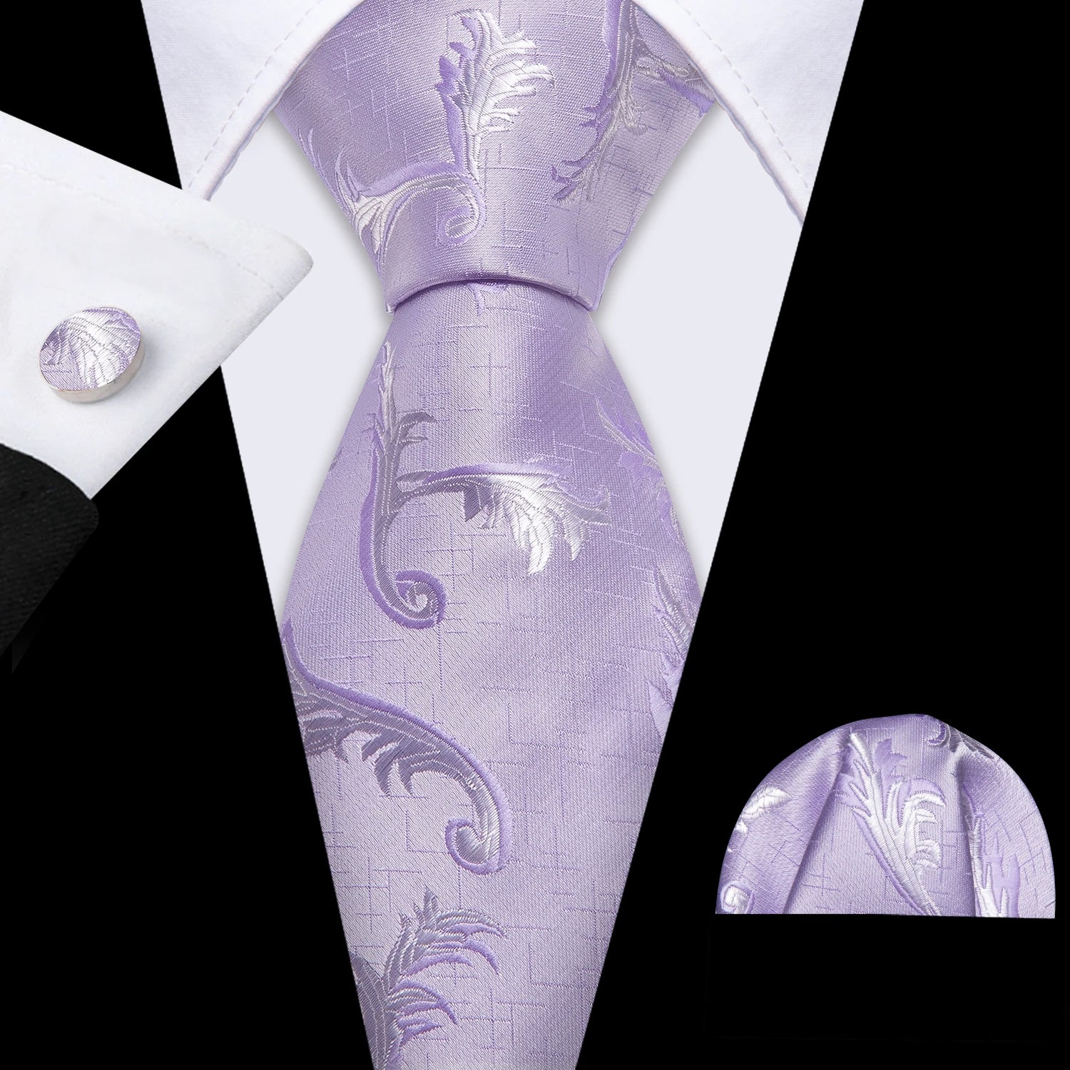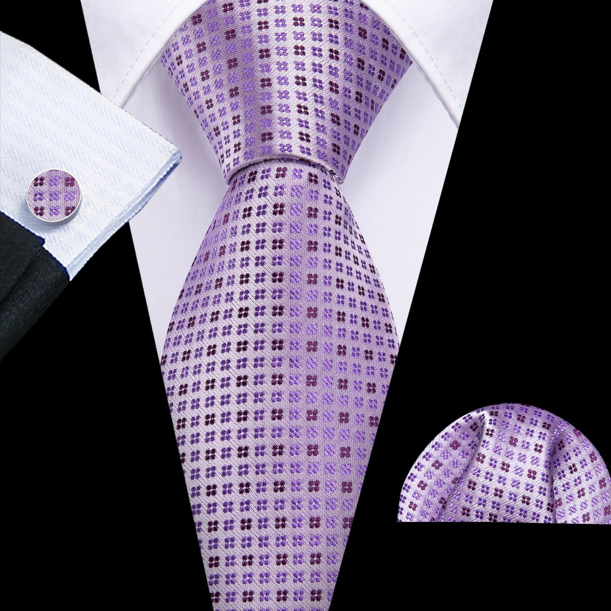 Male Gift Silk Men Tie Set Purple Violet Solid Paisley Striped Wedding Business Tie for Man Necktie Handky Cufflinks Barry.Wang