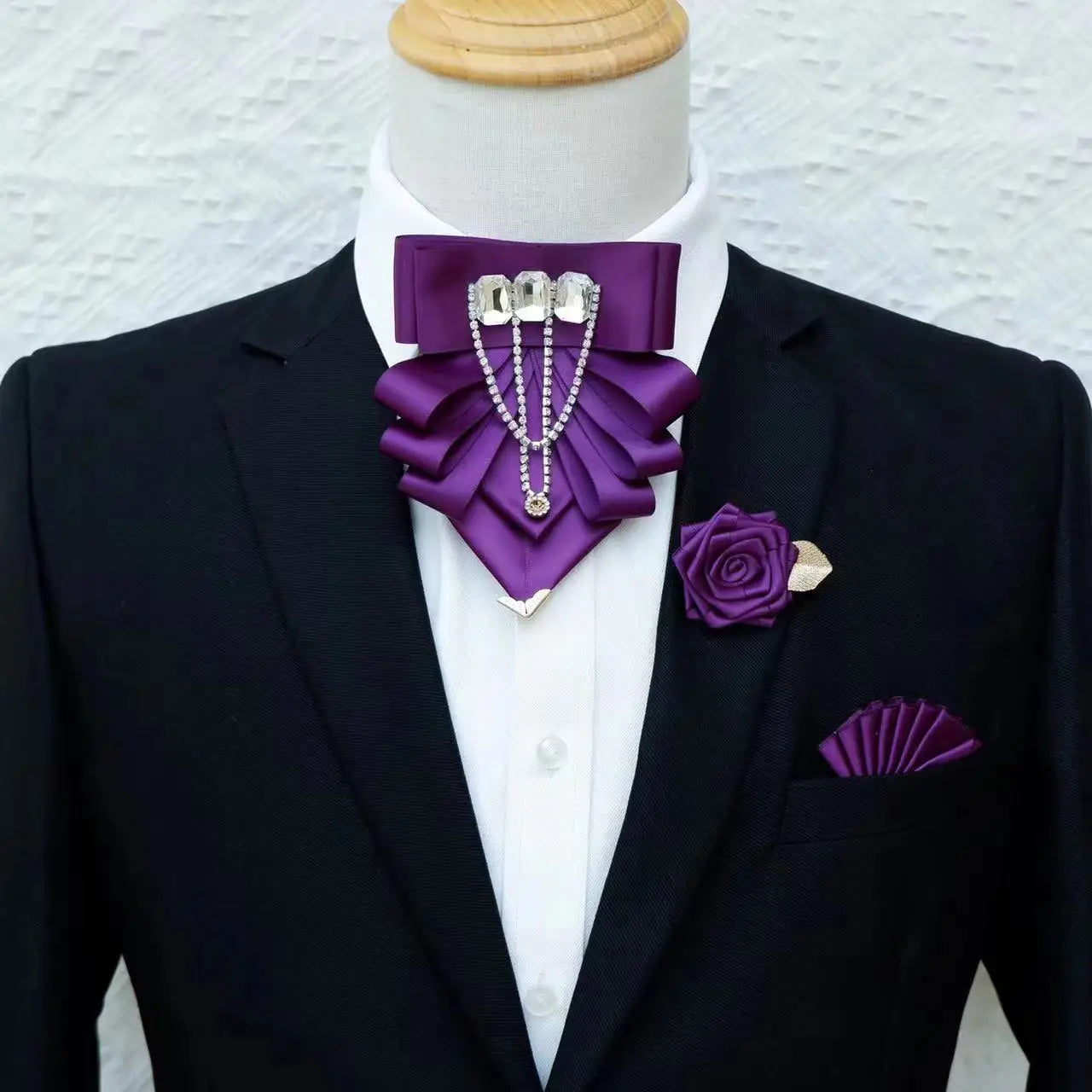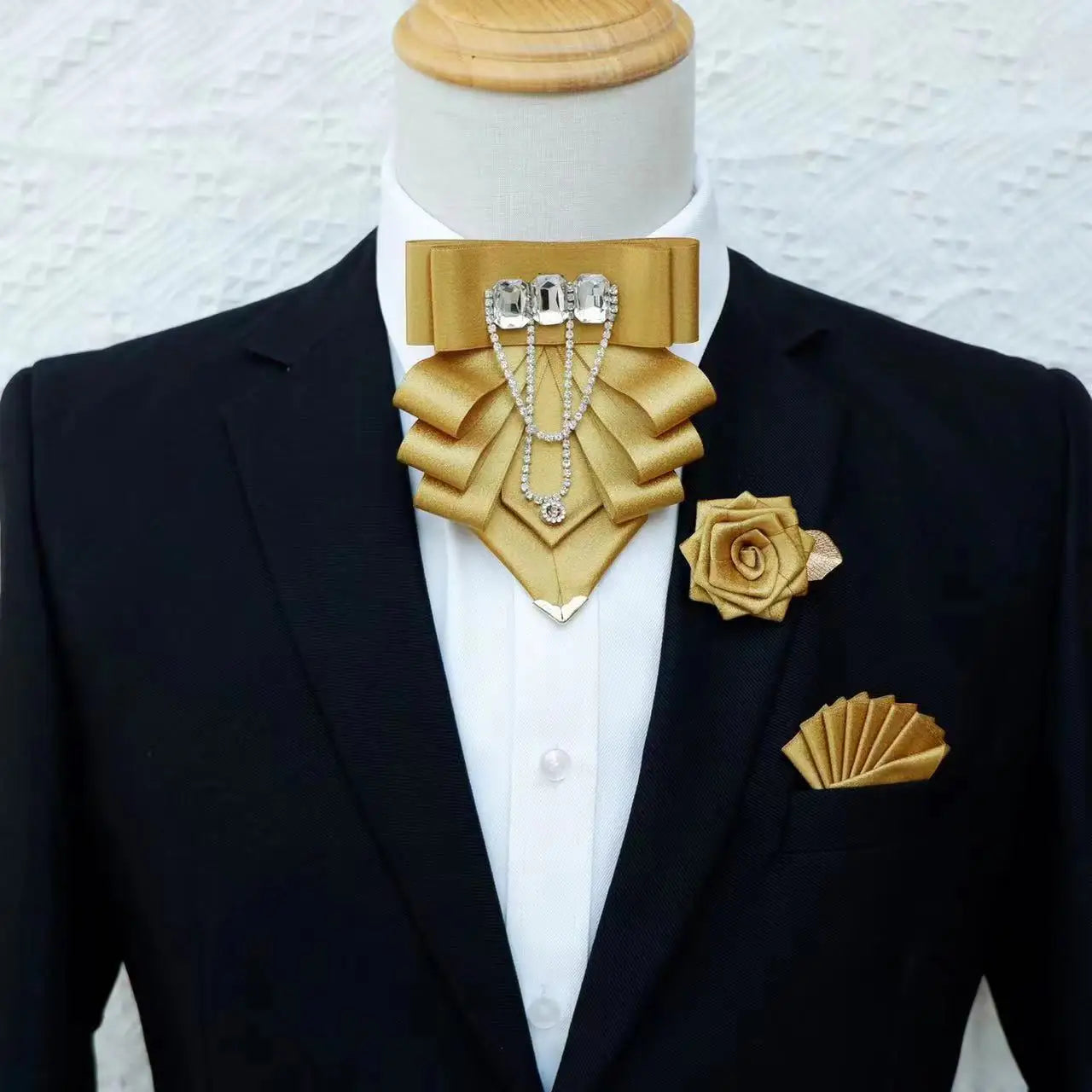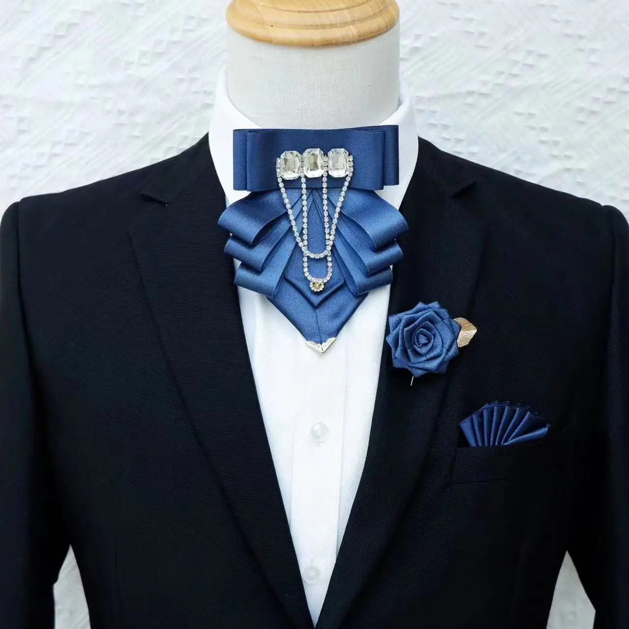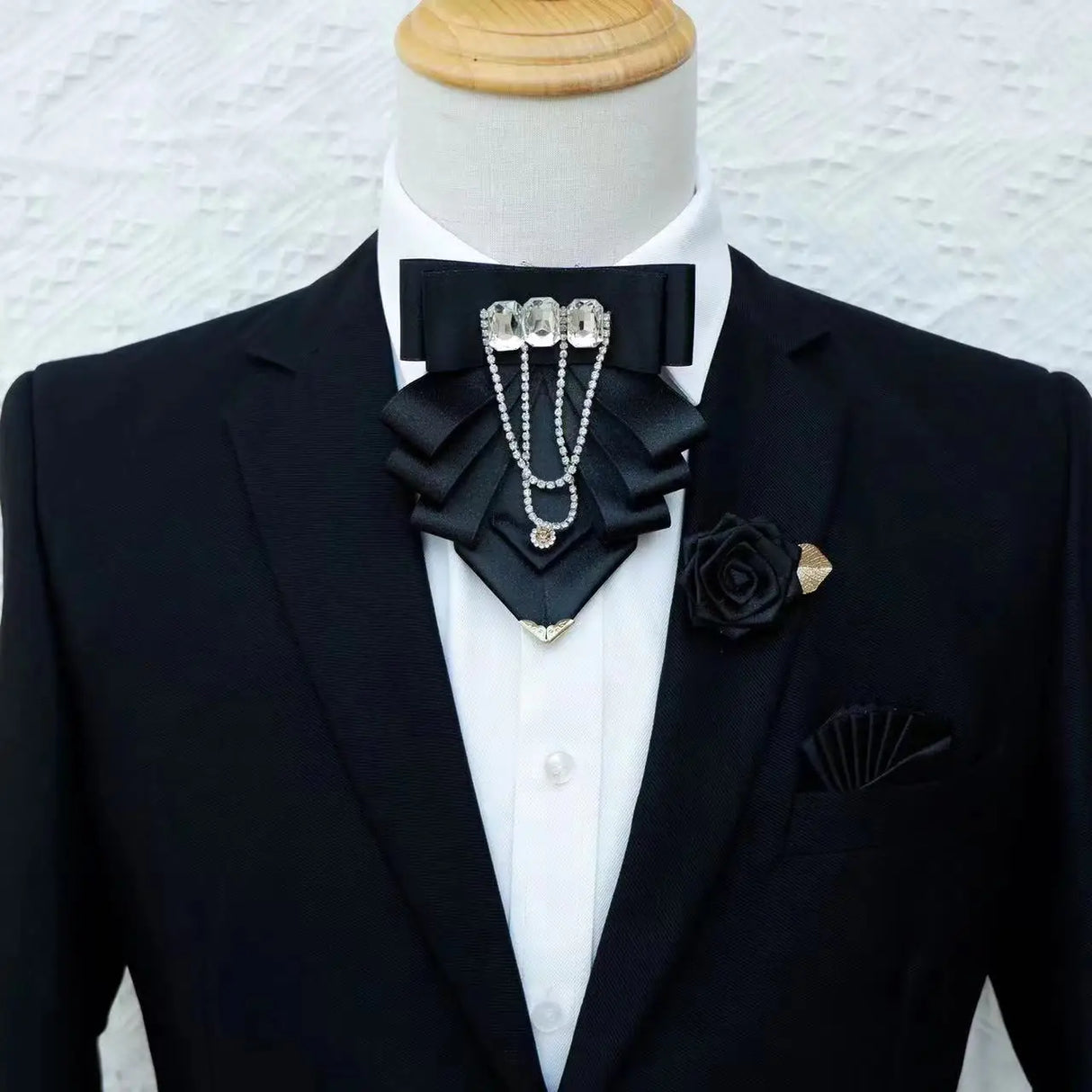 Original Fashion Tassel Rhinestone Bow Tie British Business Banquet Dress Collar Flowers Men's Wedding Bow-tie Brooch 3 Pcs Set - 18 is backordered and will ship as soon as it is back in stock.