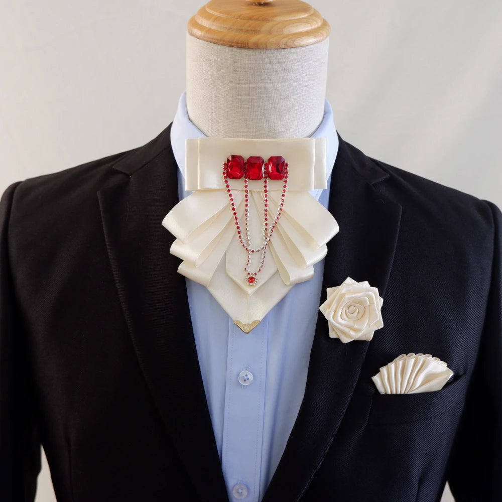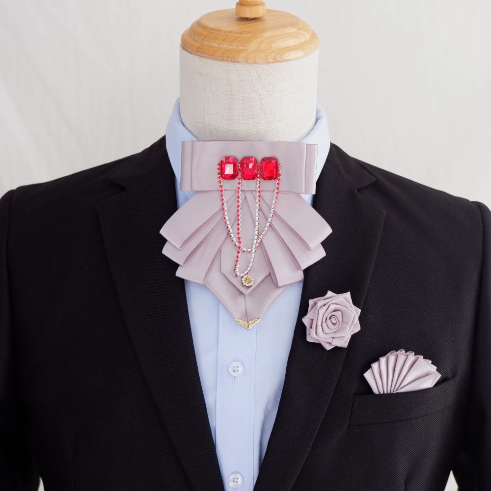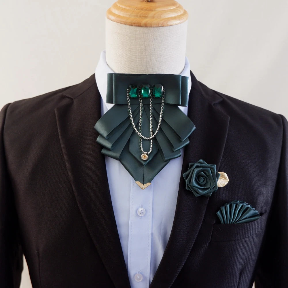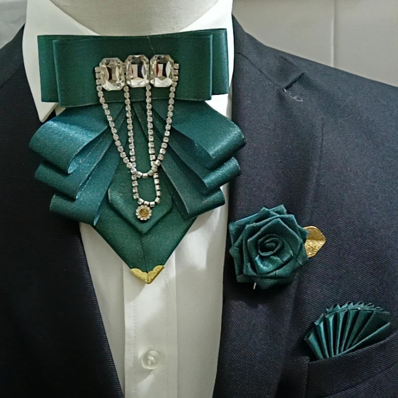 Original Fashion Tassel Rhinestone Bow Tie British Business Banquet Dress Collar Flowers Men's Wedding Bow-tie Brooch 3 Pcs Set
