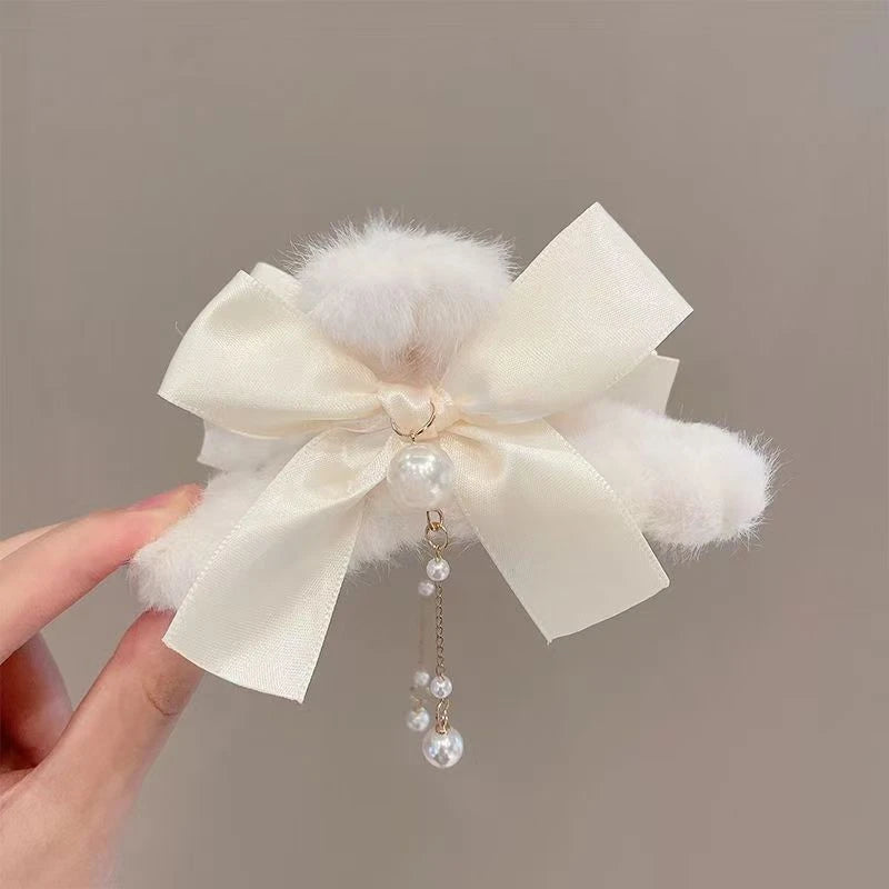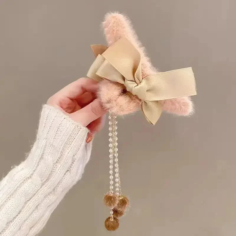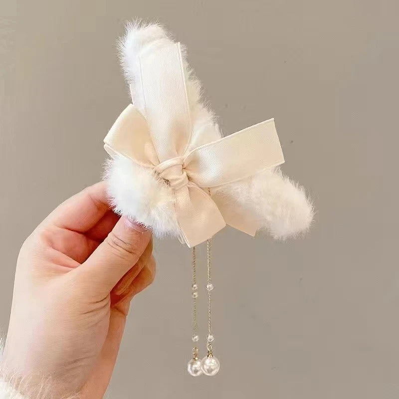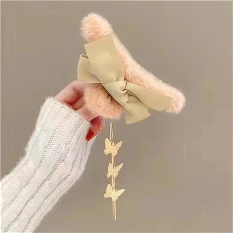 New Fashion Bow Tassel Pendant Hair Clips Korea Ponytail Plush Shark Claw Girls Fall and Winter Gift Hair Accessories