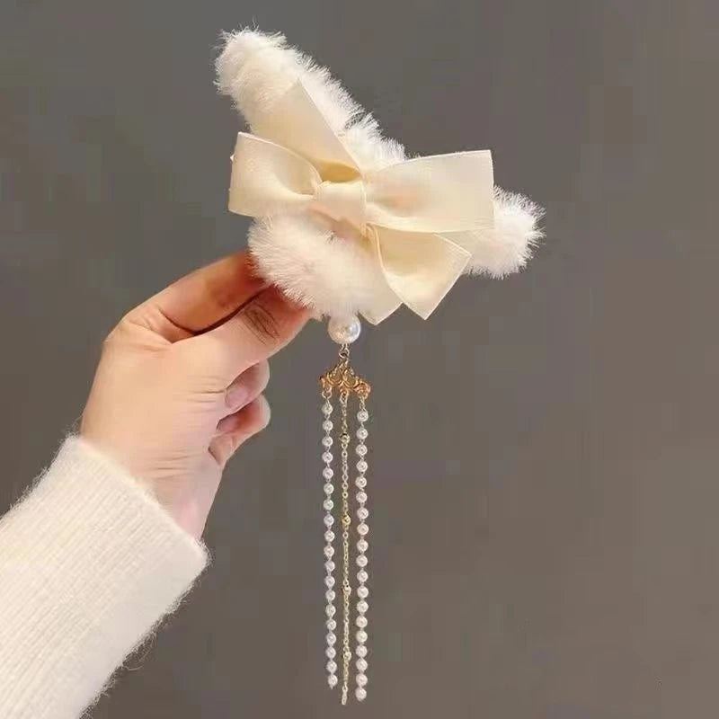 Plush bow tassel pendant hair clips for your party, festival or daily life