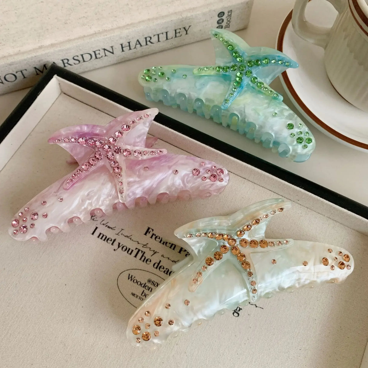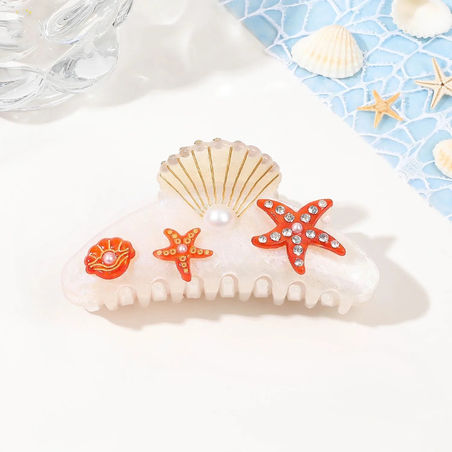 YHJ Starfish Hair Claw for Women Rhinestone Acetate Claw Clip Vacation Jewelry Hair Clip Trendy Claw Clips Hair Accessories