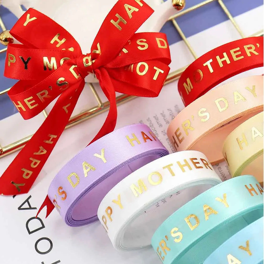 5Yards Mother's Day Thread Ribbons Cake Gifts Box Packaging Wedding Bouquet Birthday Christmas Bowknot Scene Party Decoration