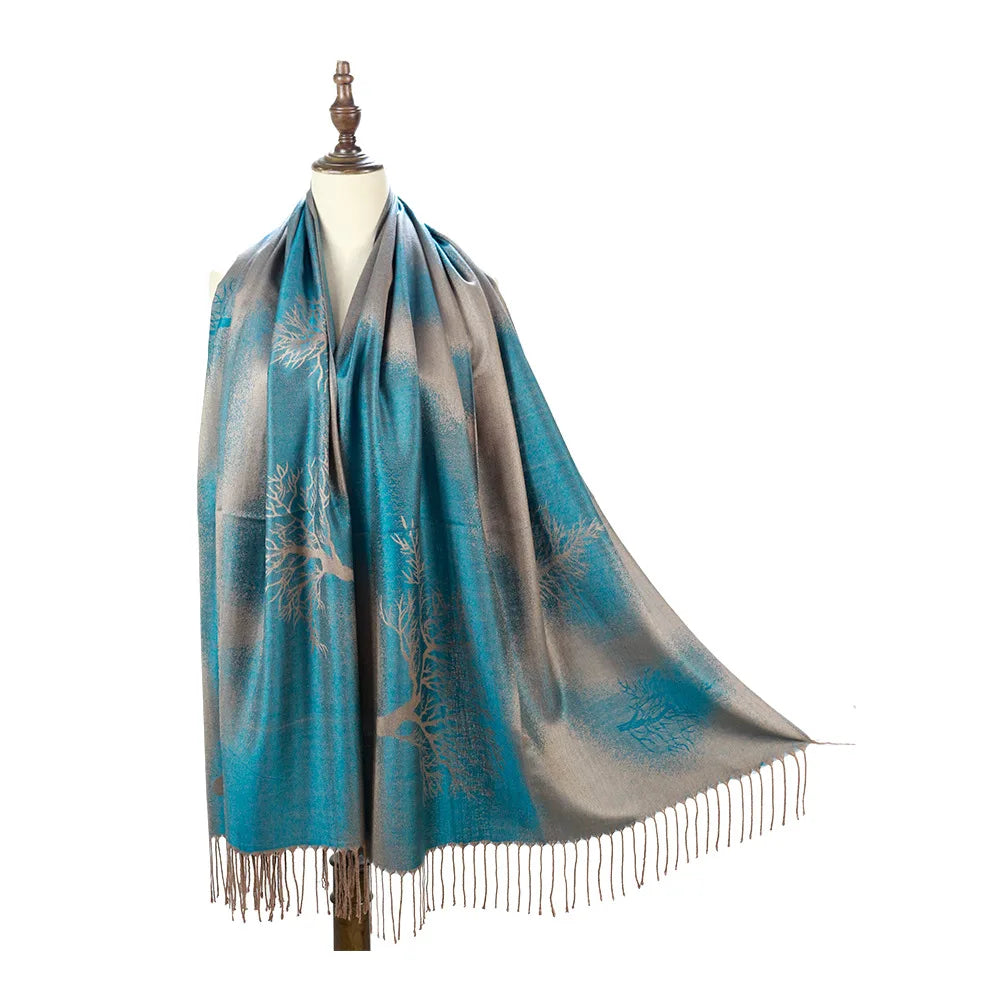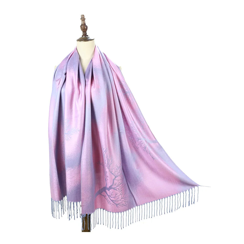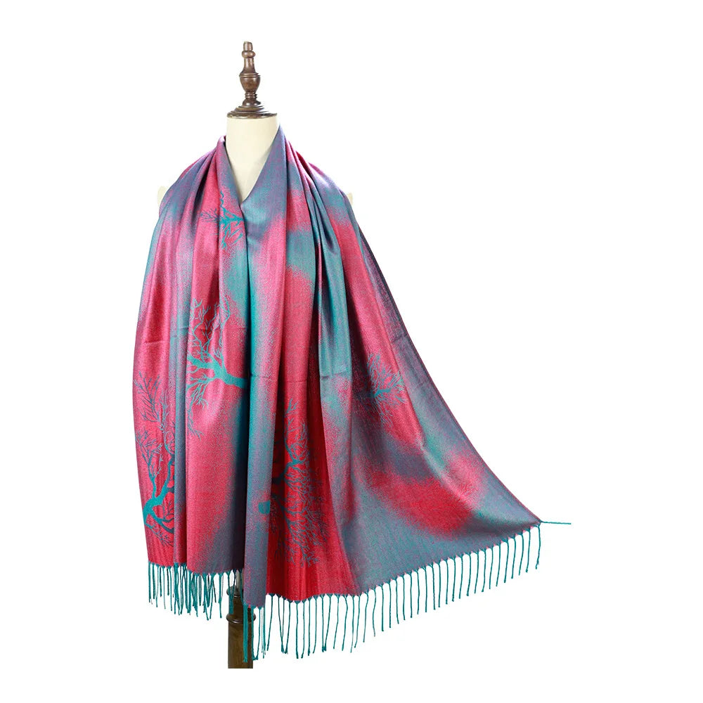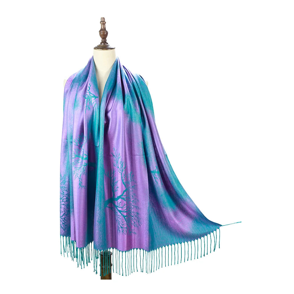 Autumn Women Elegance Shawl Fashion Vintage Scarf Beach Party Shawl Female Colour Printing Neckerchief Tassel Casual Cloak