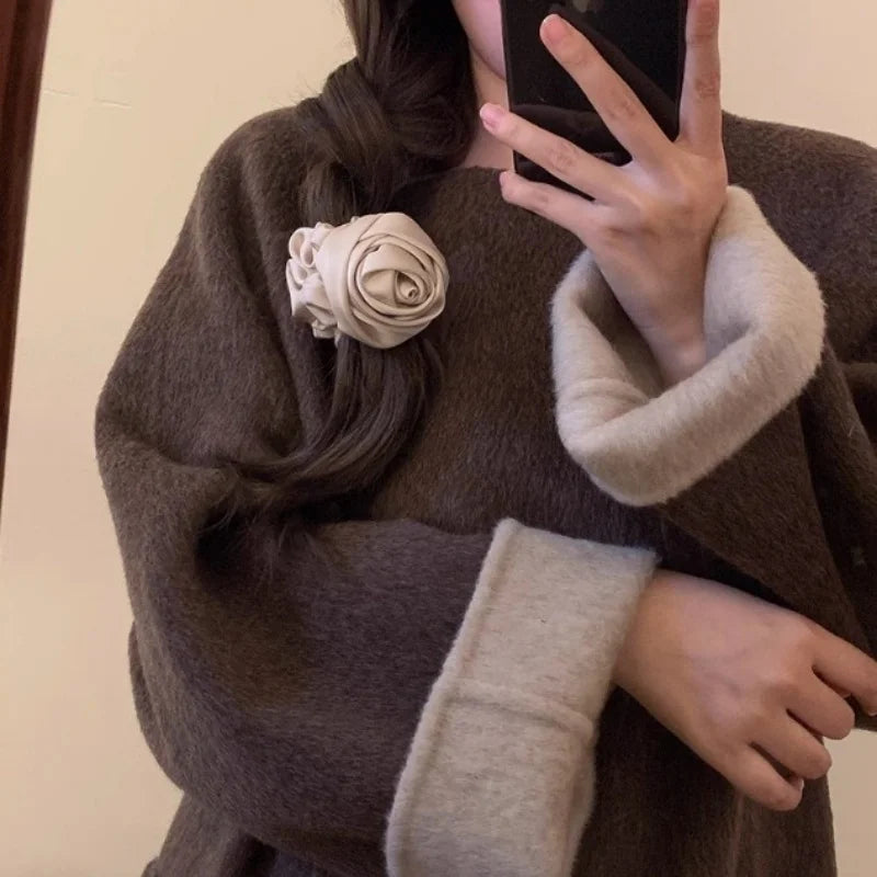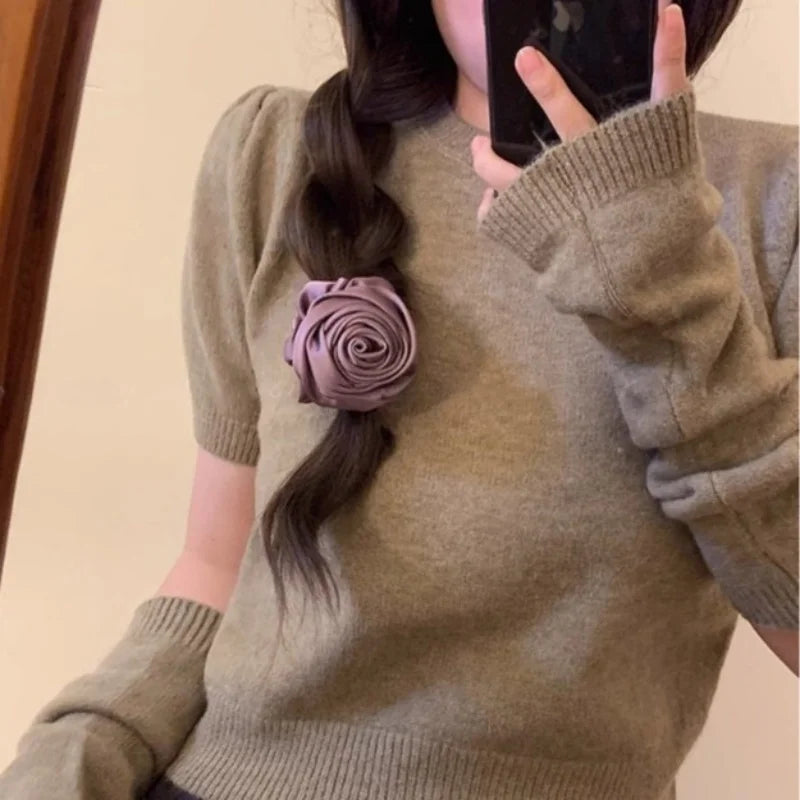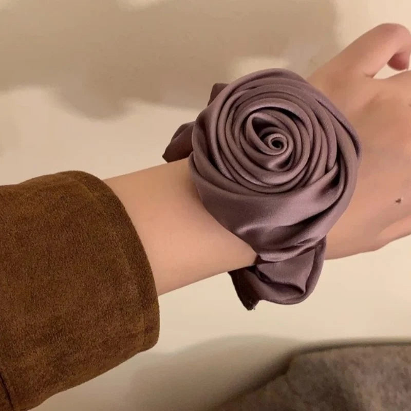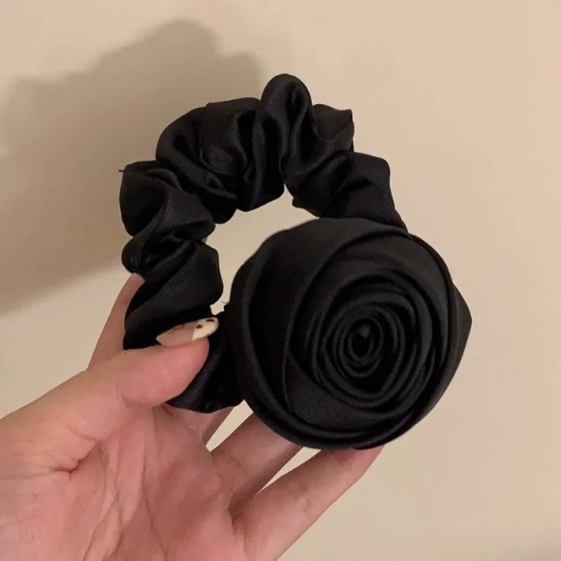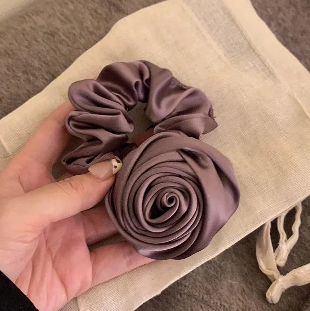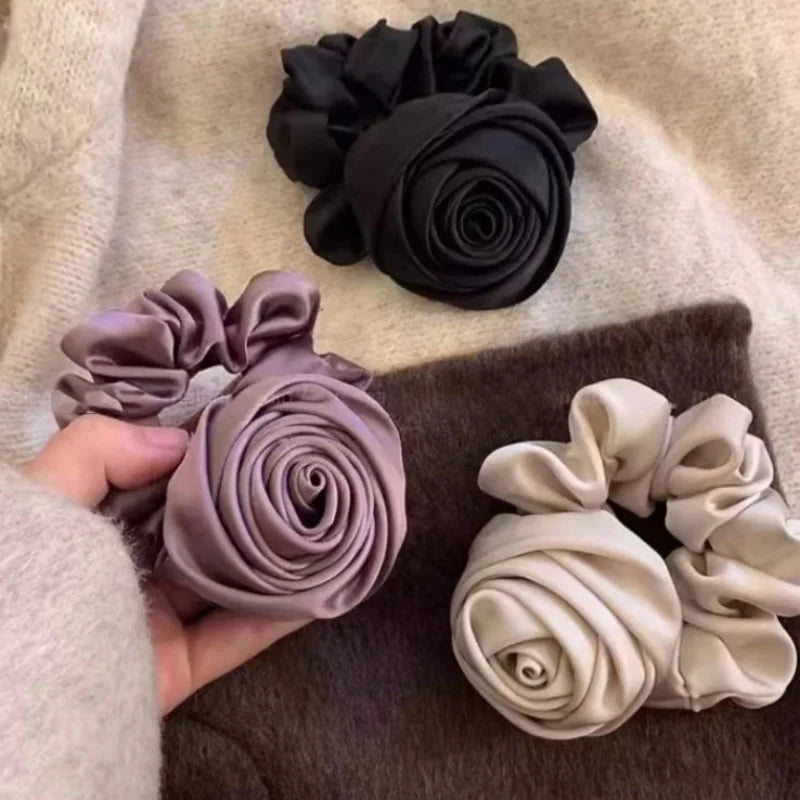 SIMPLEJEWEL™Handmade Rose Flower Elastics Hair Scrunchies, Ties Satin Scrunchies Hair Band Ponytail Holder Band Scrunchies Ring
