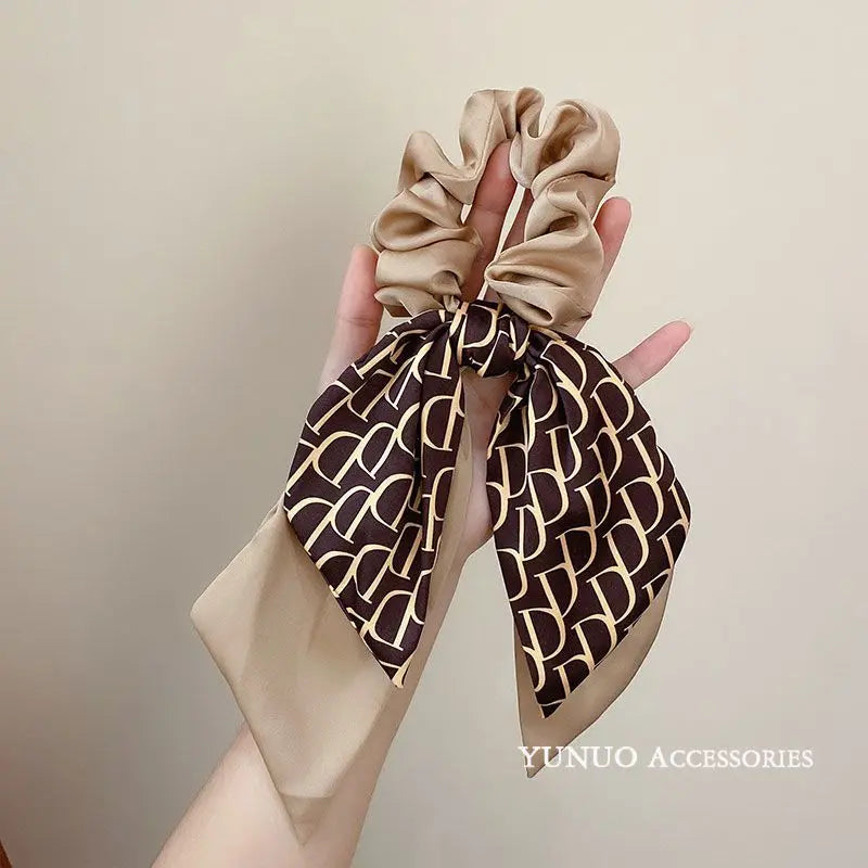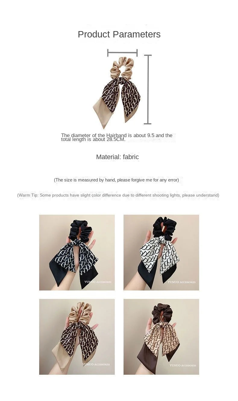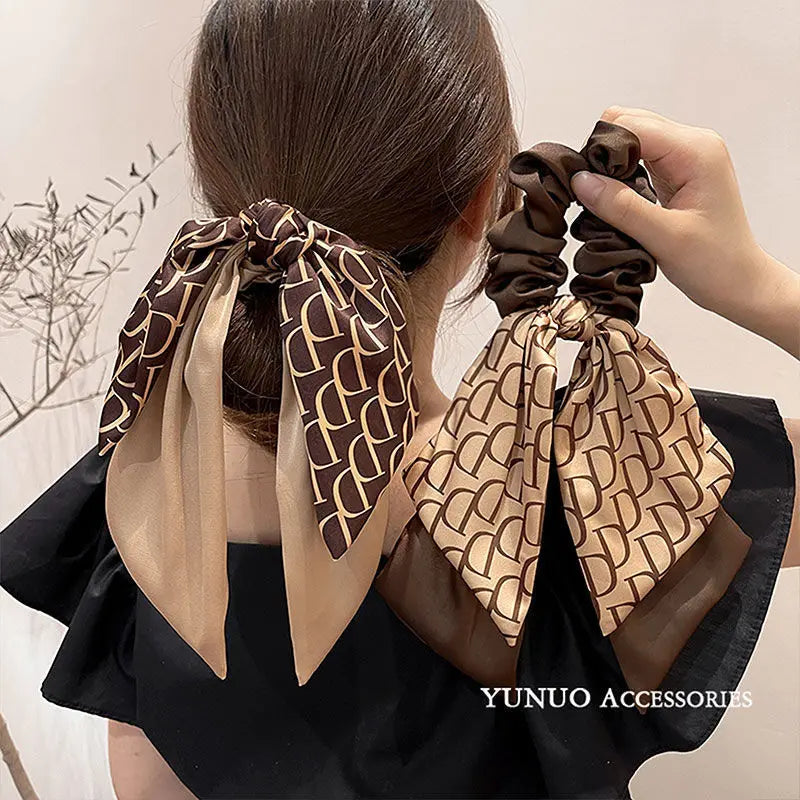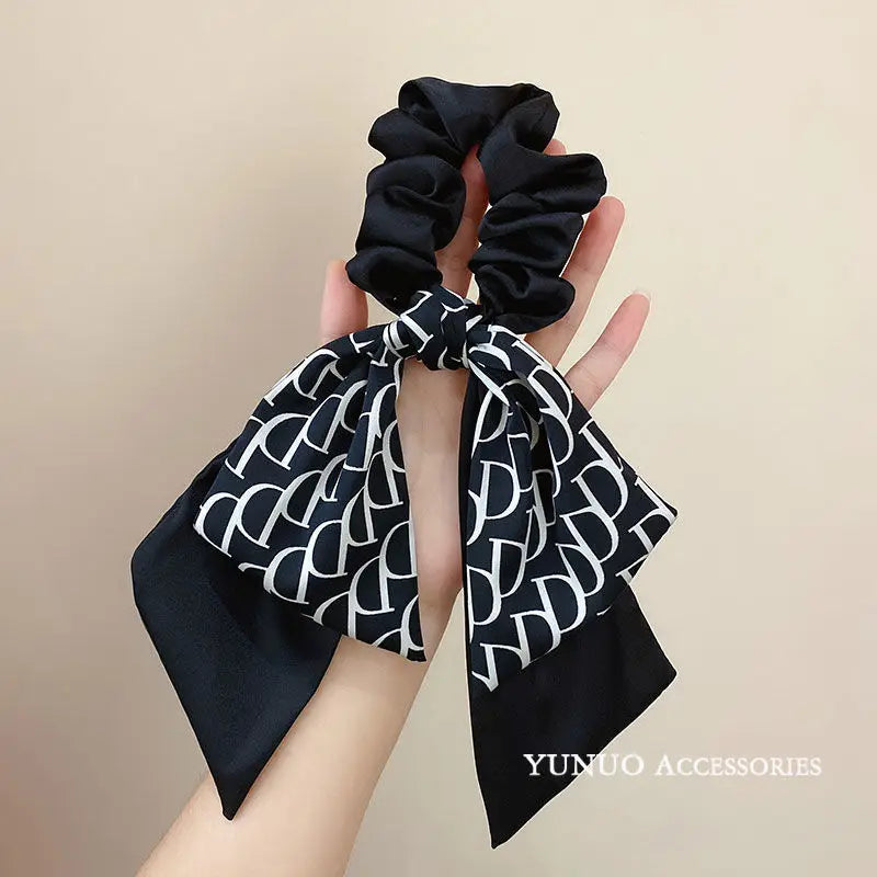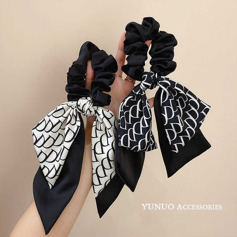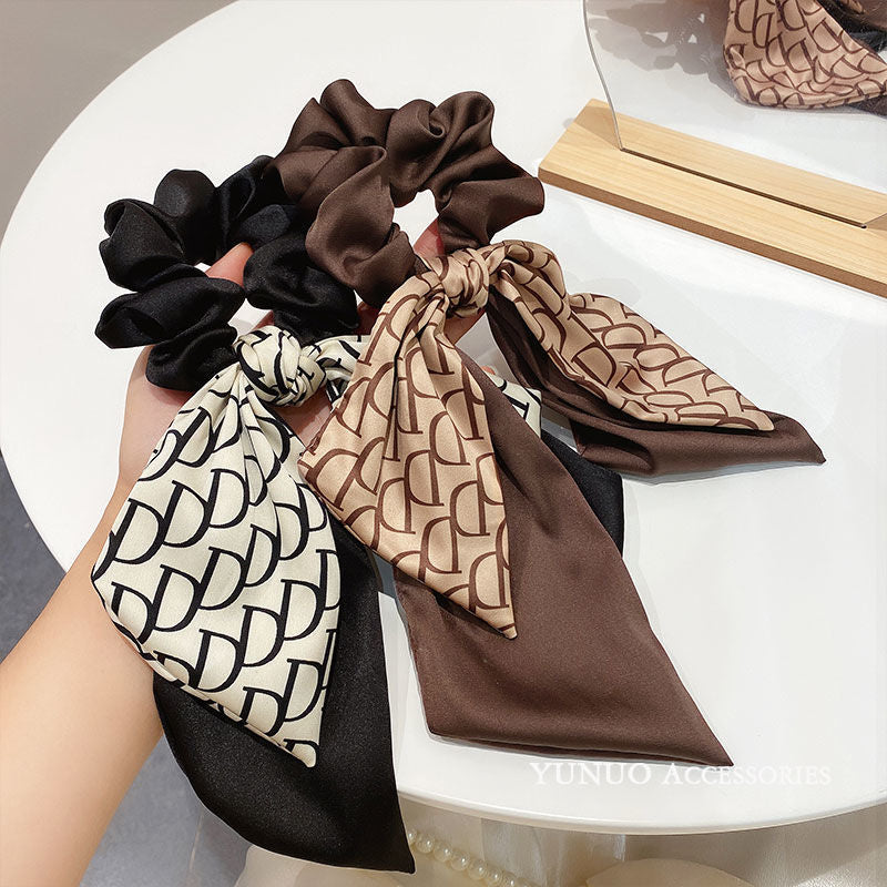 Women's Elastic Hair Bands French Style Hair Rope Creative Letter D Classic Retro Bow Ribbon Headdress Delicate All-matching