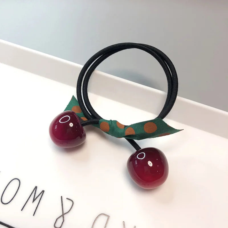 Cute Cherry Elastics Hair Ties for Girls Colorful Polka Dot Bow Knot Hair Rope Ponytail Holder Hair Accessories for Women
