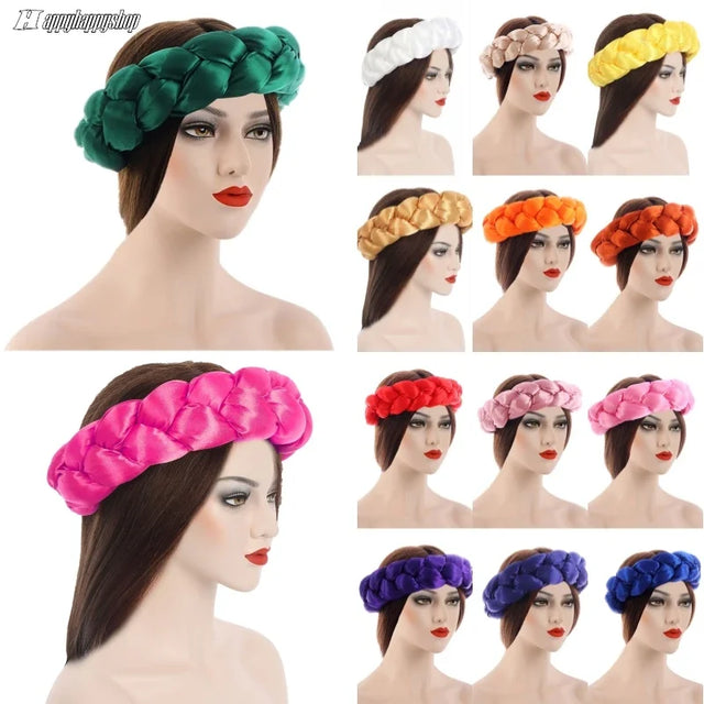 Fashion Candy Color Braids Twist Headbands for Women African Headwear Elastic Hair Bands Ladies Turban Female Bandage Headwrap