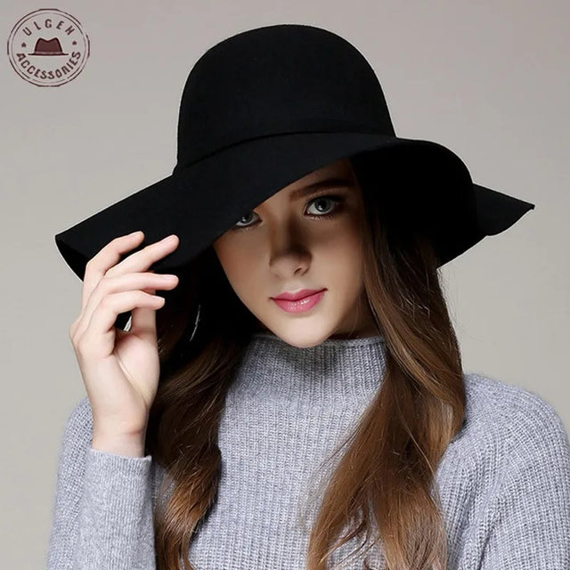 Fashion Winter Fedora Hats for Women Hat Vintage Bowler Jazz Top Cap Felt Wide Brim Floppy Sun Beach Cashmere Church Caps