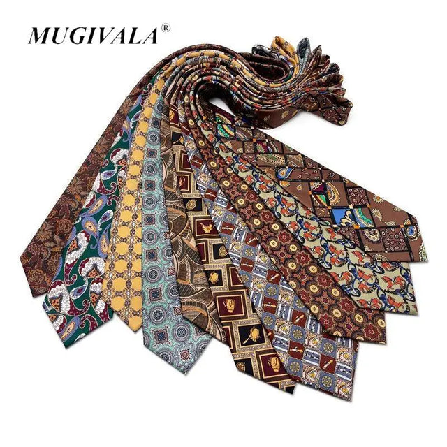 MUGIVALA 9CM Wide Printed Vintage Tie Nostalgic Retro Suit Shirt Formal Business Casual Fashion Accessories
