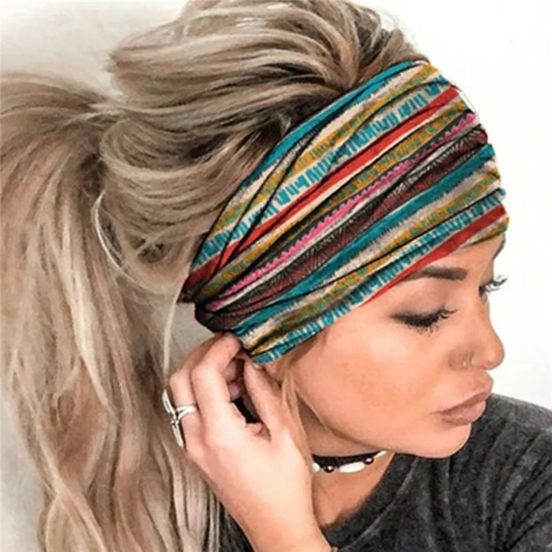New Boho Flower Print Wide Headbands Vintage Knot Elastic Turban Headwrap for Women Girls Cotton Soft Bandana Hair Accessories