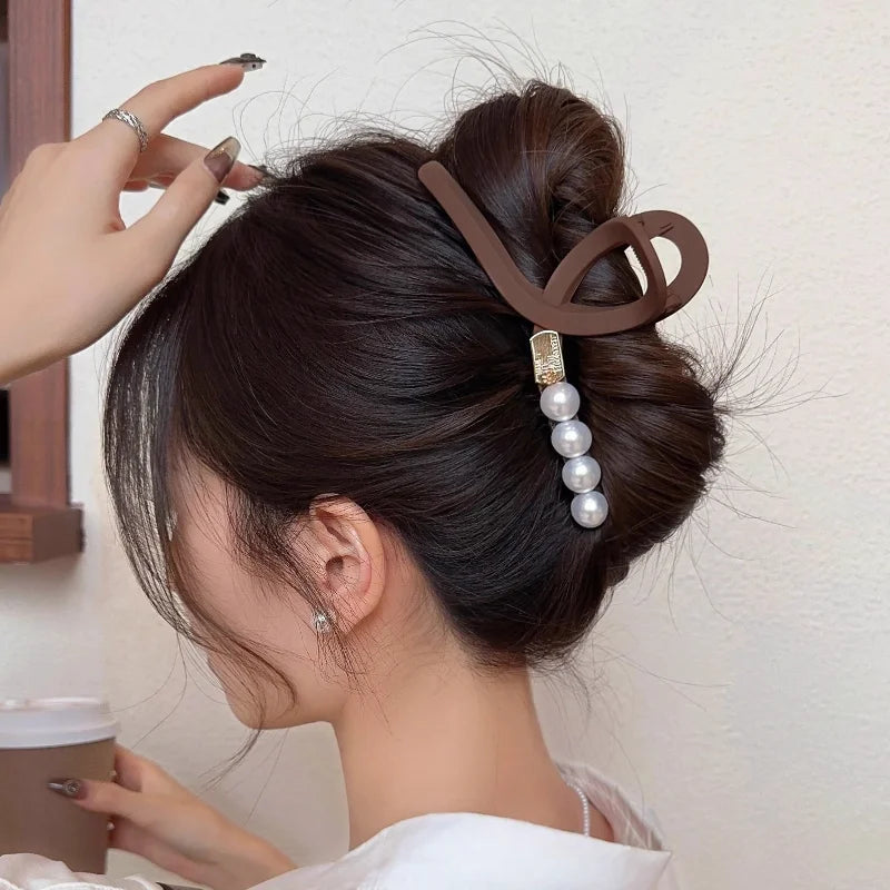 Vintage Korean Frosted Large Hair Claw Clip Female Elegant Pearl Hair Crab Hair Clip Headdress Female Jewelry Accessory Gift
