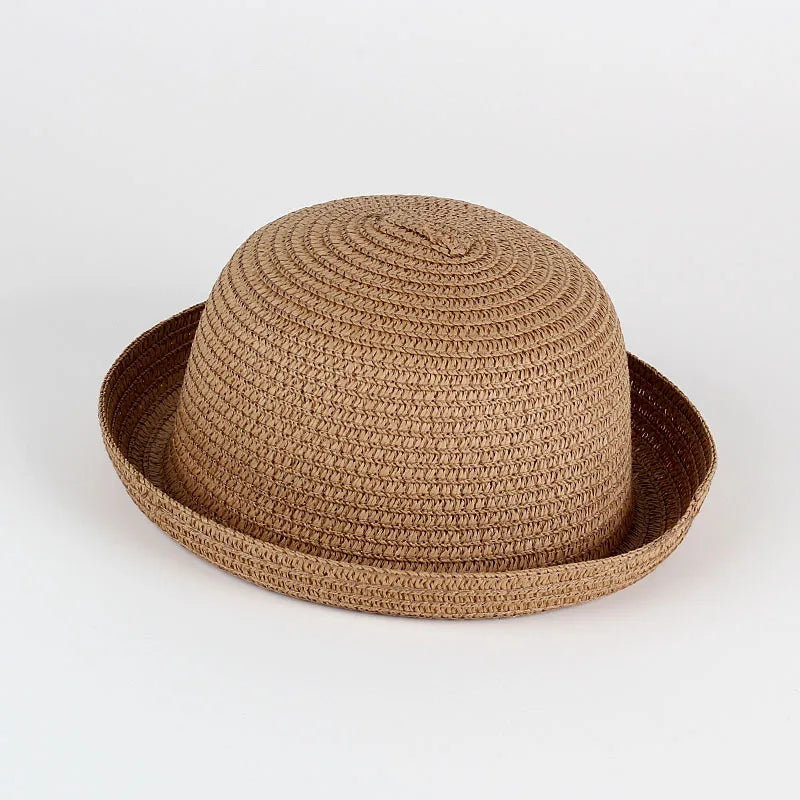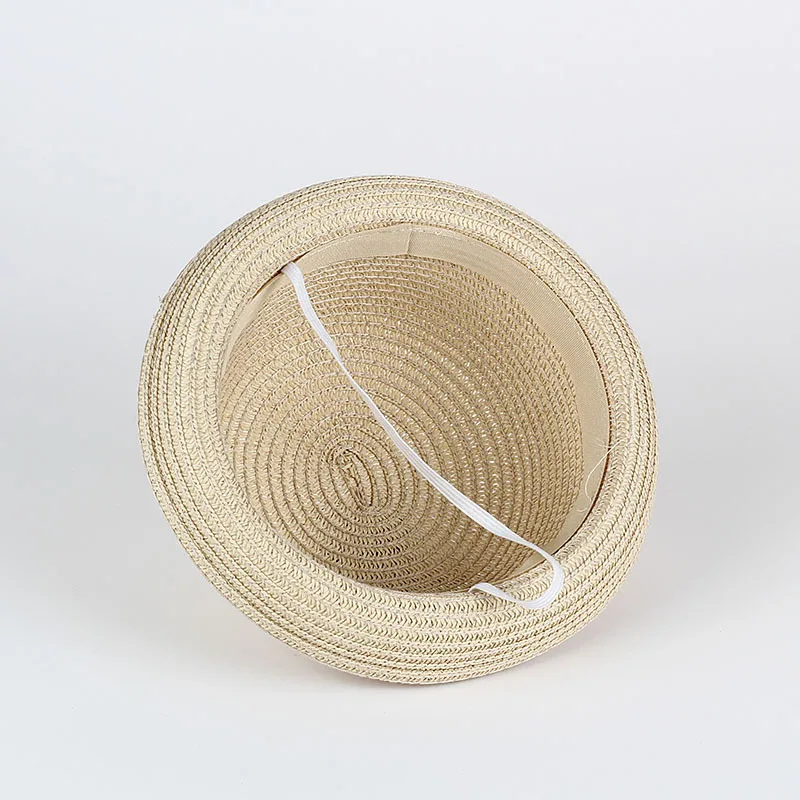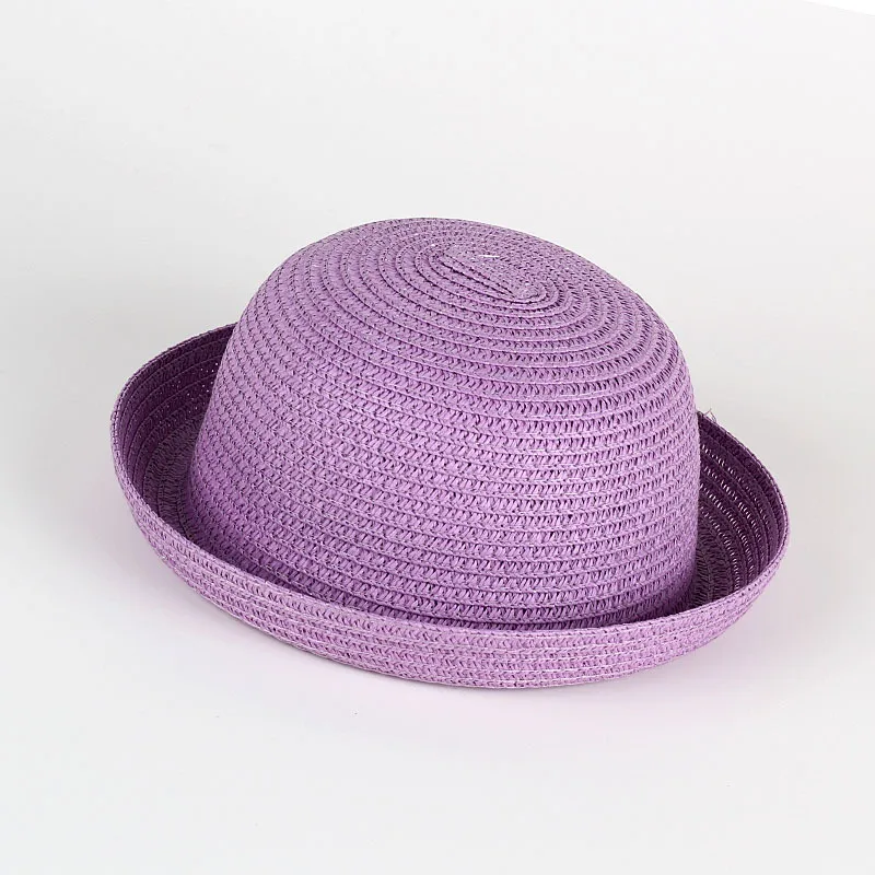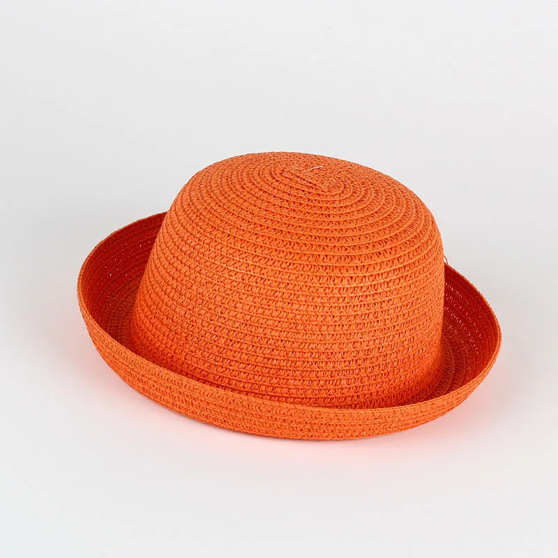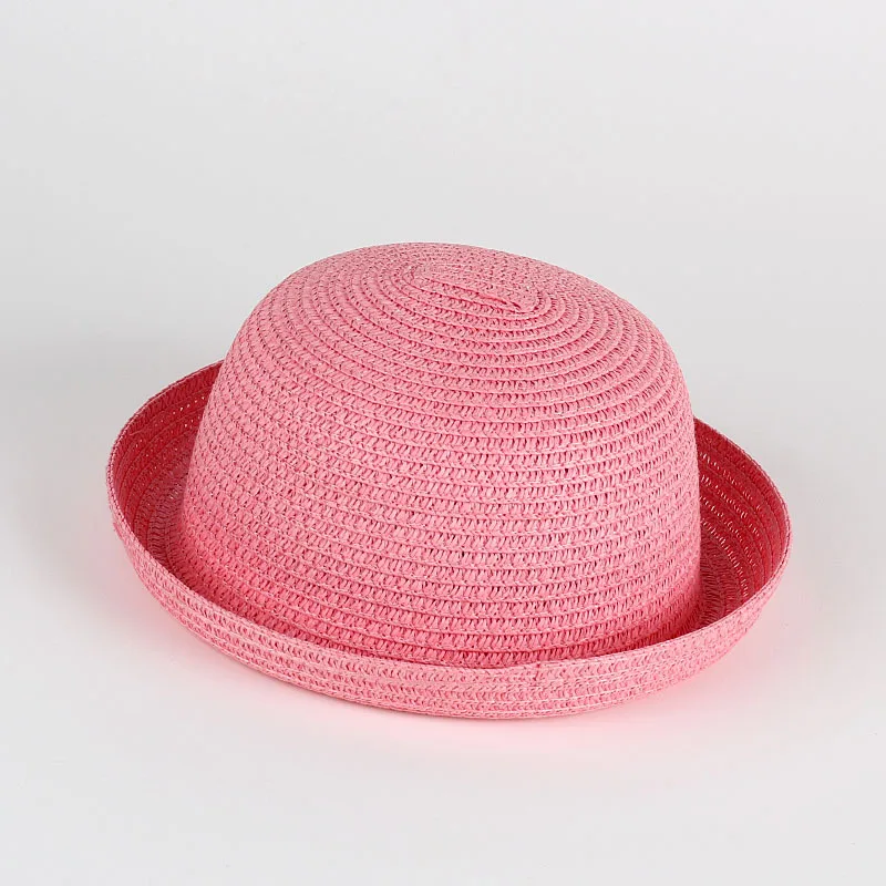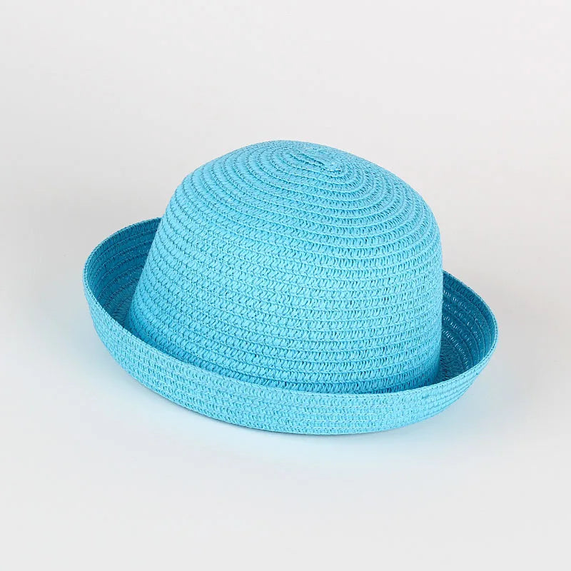 Wholesale Baby Straw Hat Solid Color Kids Character Decoration Infant Sun Hats Girl Boys Bucket Cap Children Beach Panama Caps
