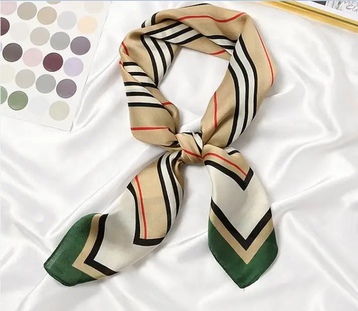 Yishine 70x70CM 3Colors New Women Multifunction Polyester Silk Scarf Elegant Stripes Printed Casual Satin Small Square Wraps - green line / 70x70 CM / Adult is backordered and will ship as soon as it is back in stock.