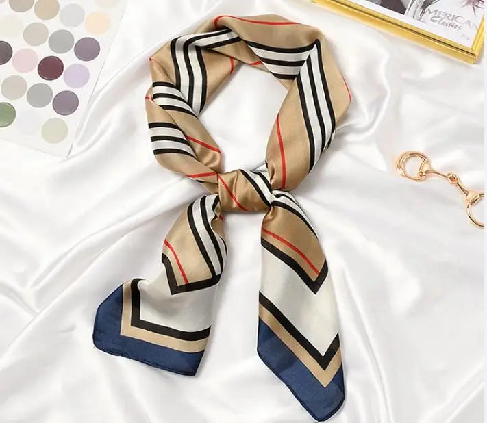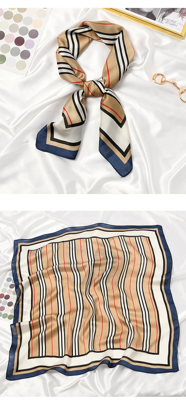Yishine 70x70CM 3Colors New Women Multifunction Polyester Silk Scarf Elegant Stripes Printed Casual Satin Small Square Wraps