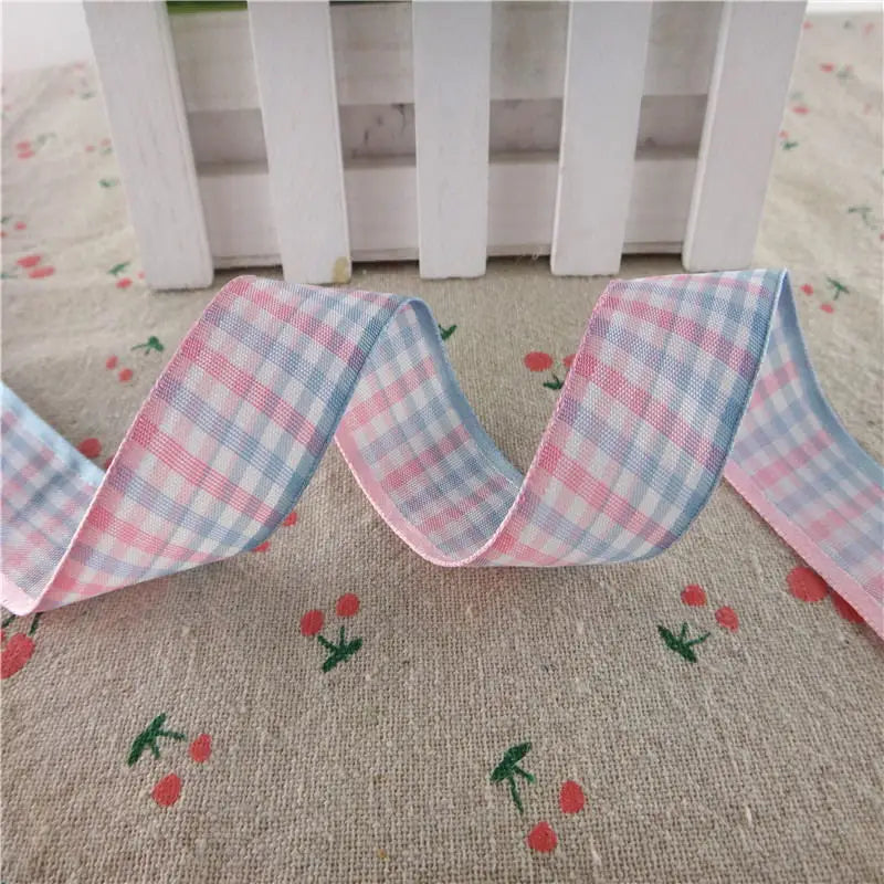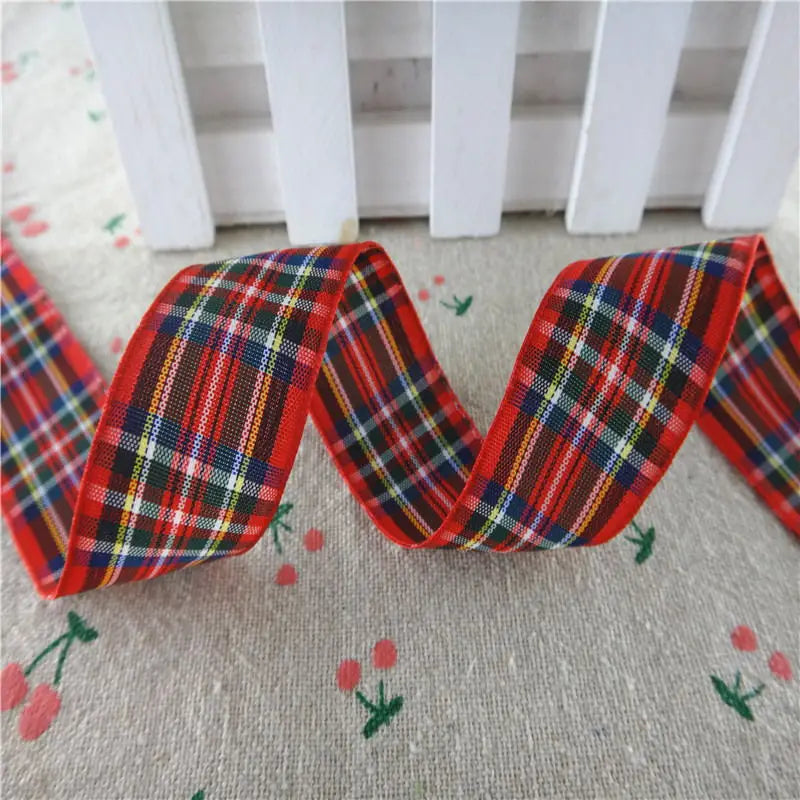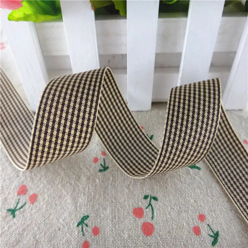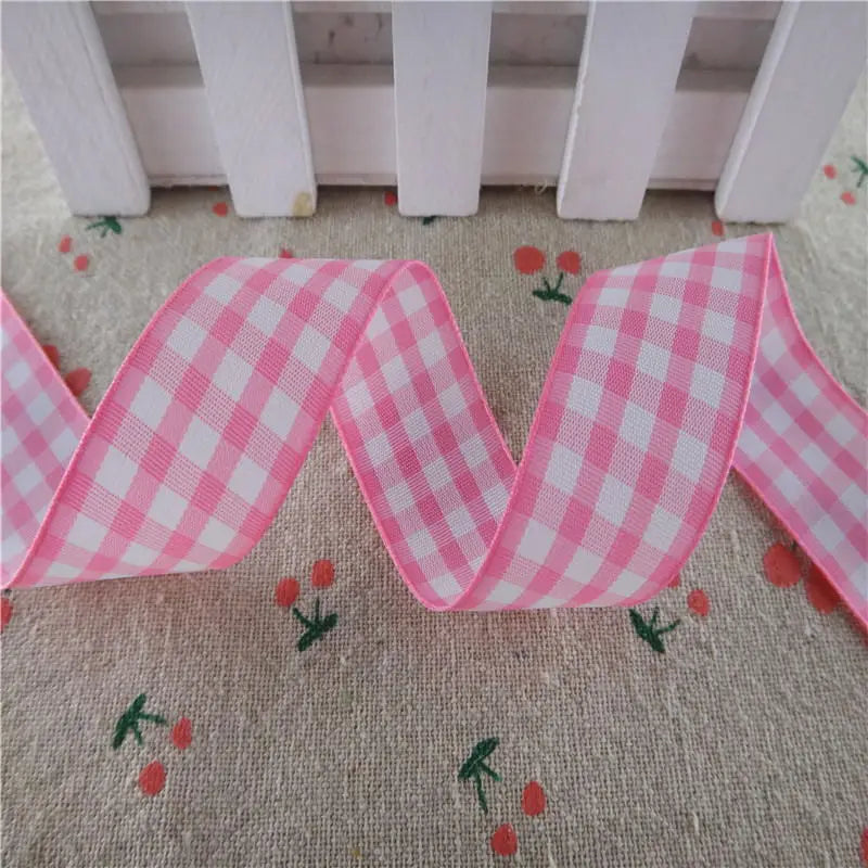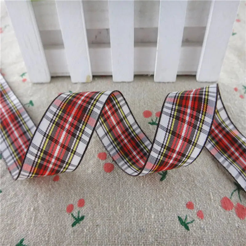 18112404, 1" 25MM 5Yards Grid Lattice Printed Grosgrain Ribbons Gift Packaging DIY Handmade Materials