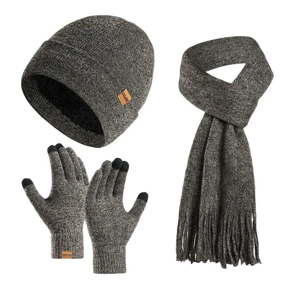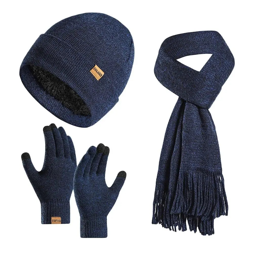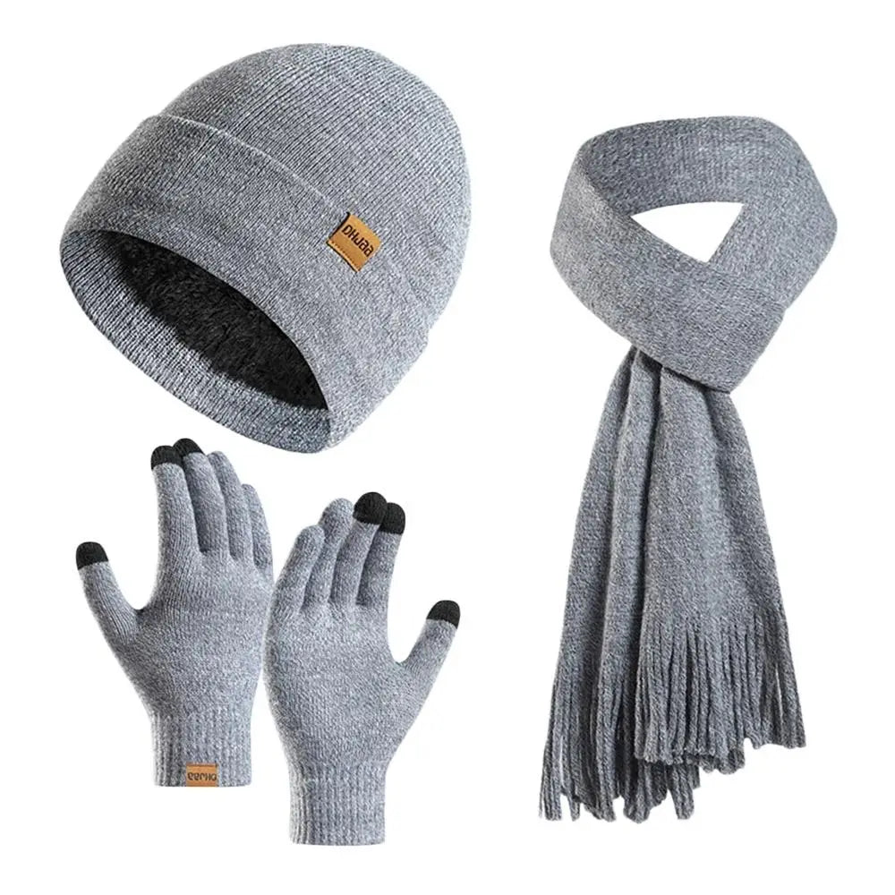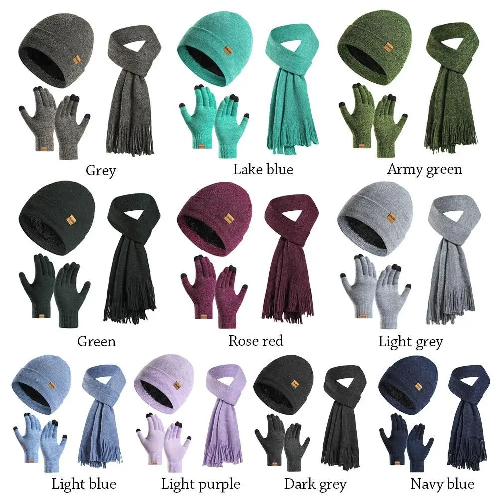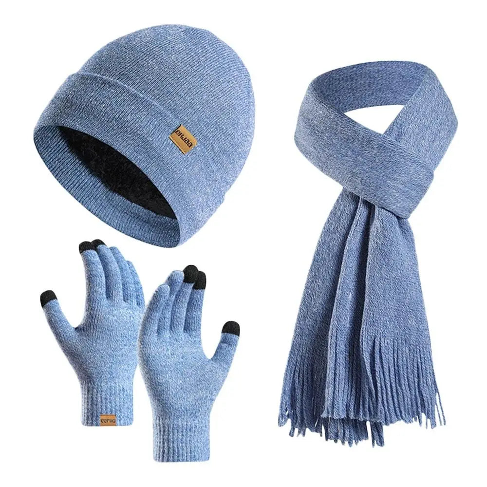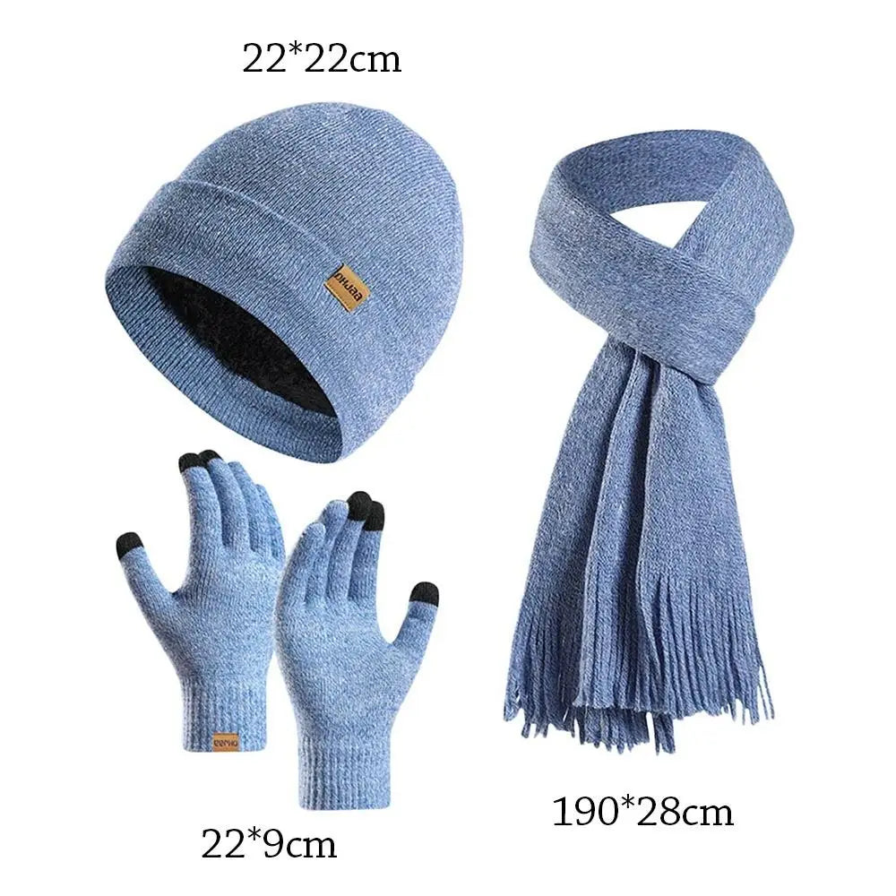 3Pcs/Set Warm Knitted Hat Winter Windproof Neck Protection Beanies Hat Outdoor Soft Scarf Gloves Set Men Women