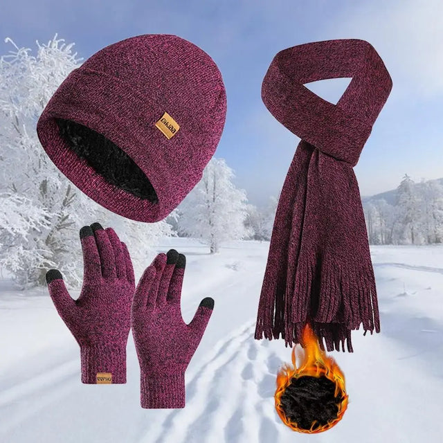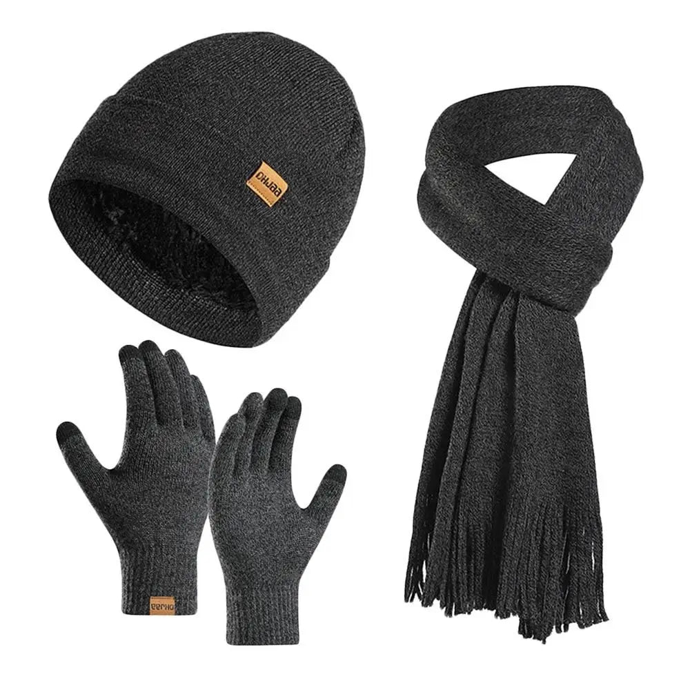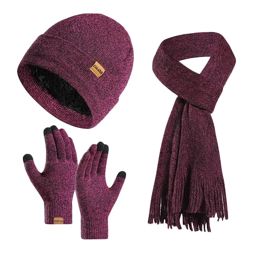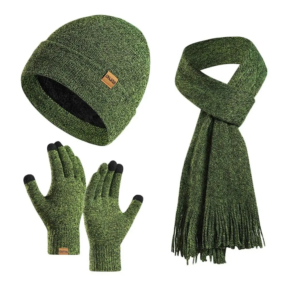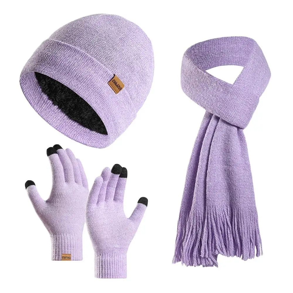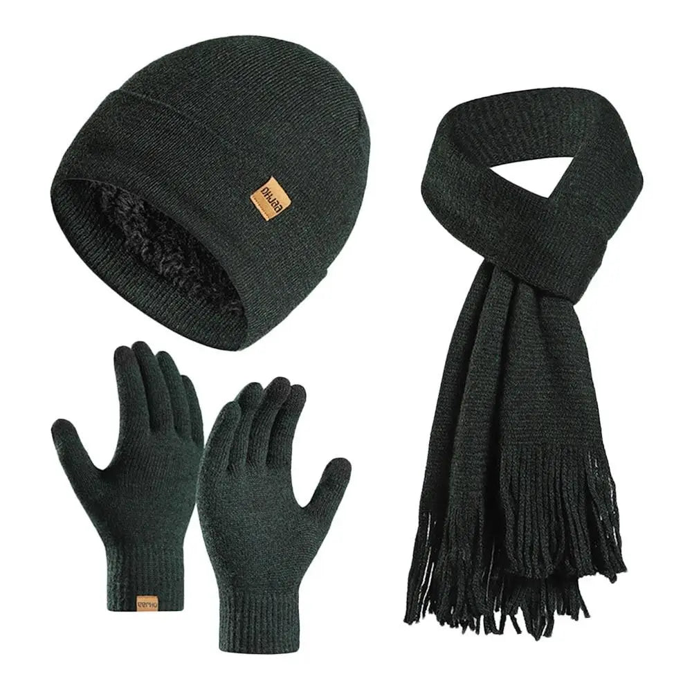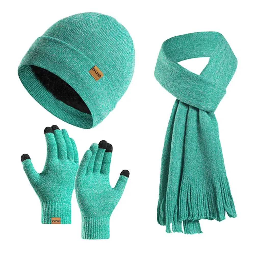 3Pcs/Set Warm Knitted Hat Winter Windproof Neck Protection Beanies Hat Outdoor Soft Scarf Gloves Set Men Women