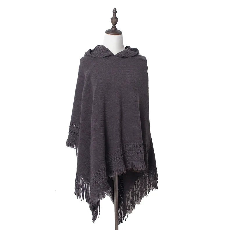 Women's Autumn and Winter New Knitted Hooded Cape Shawl Solid Colour One-Piece Knitwear Hoodeds Large Shawl