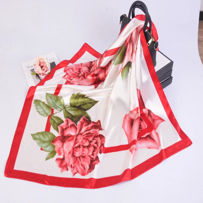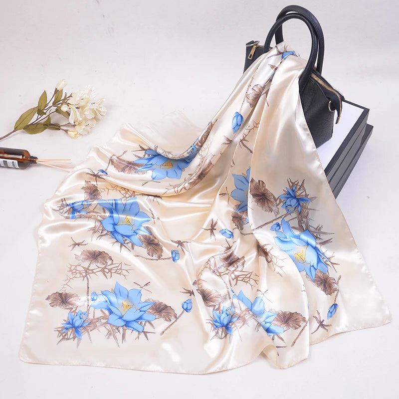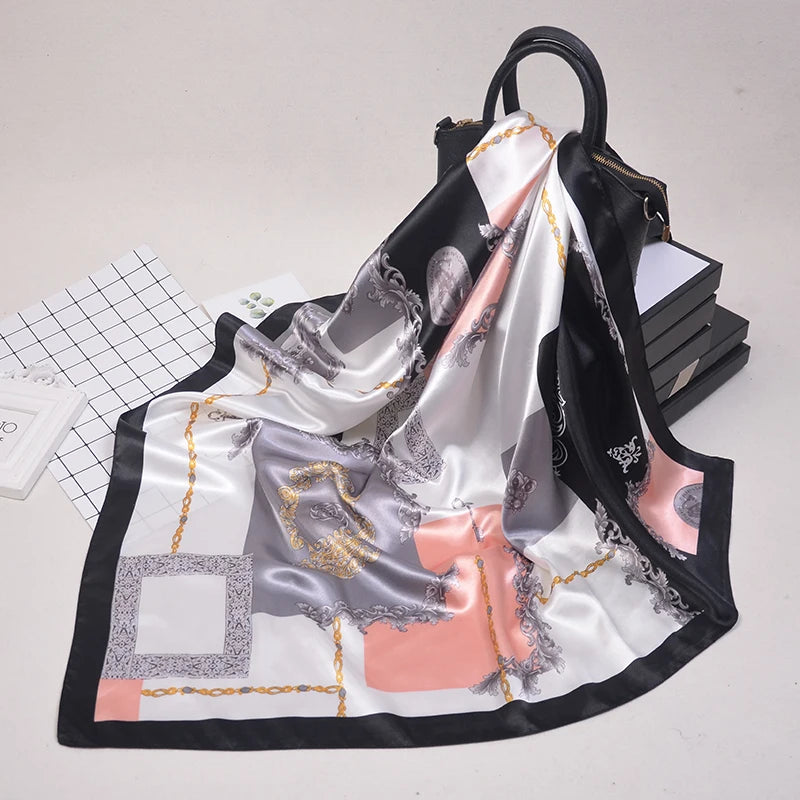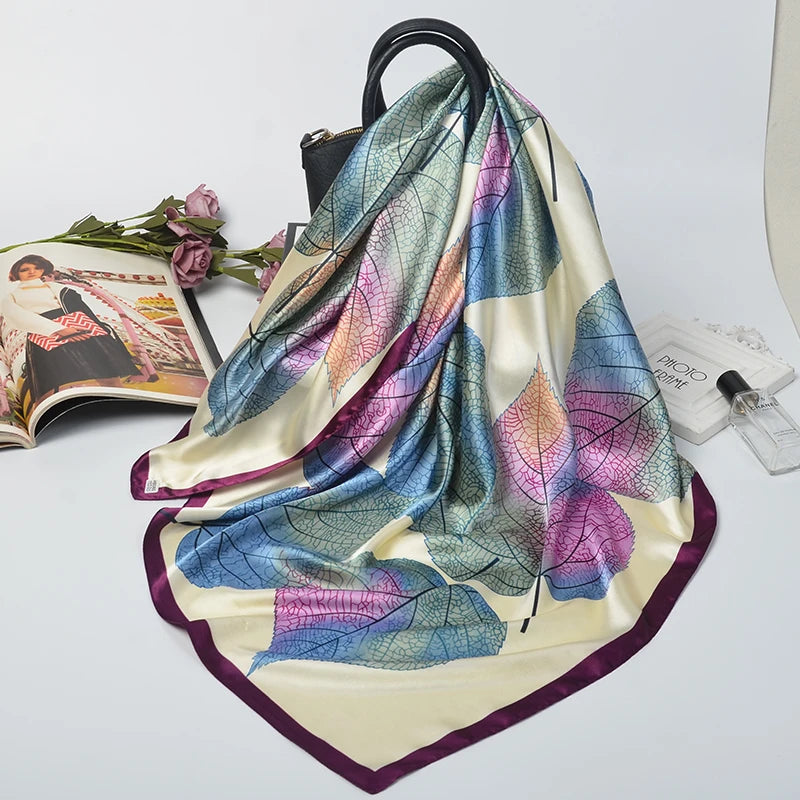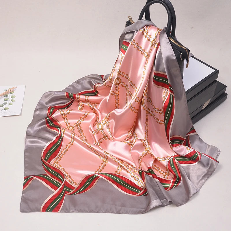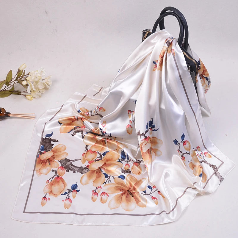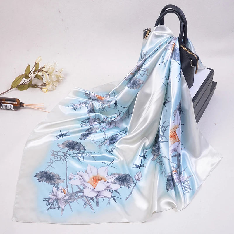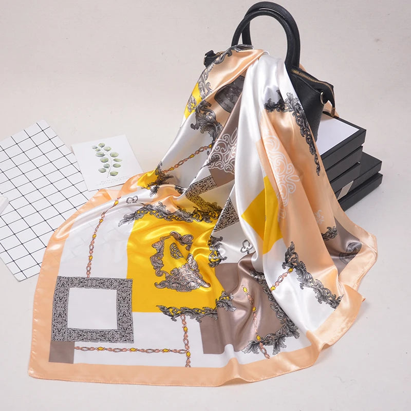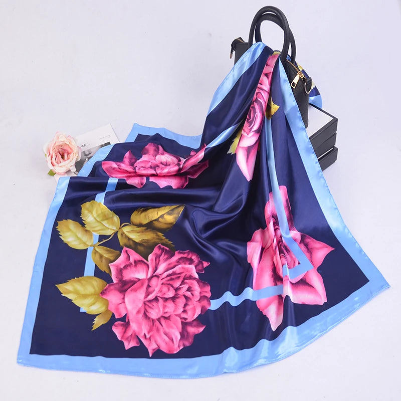 90*90cm Silk Scarves Women fashion office lady Foulard Square Head girl Shawl Wrap Muffler Pareo Bandanna Female Chiffon Hijab