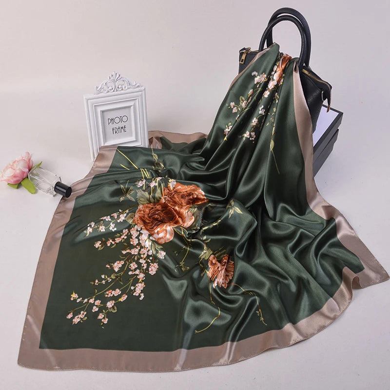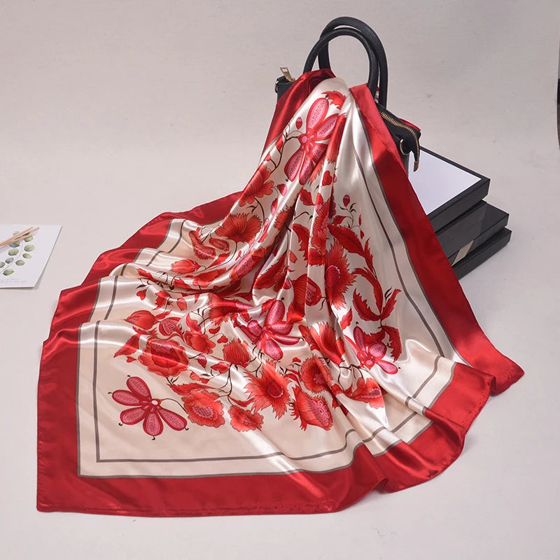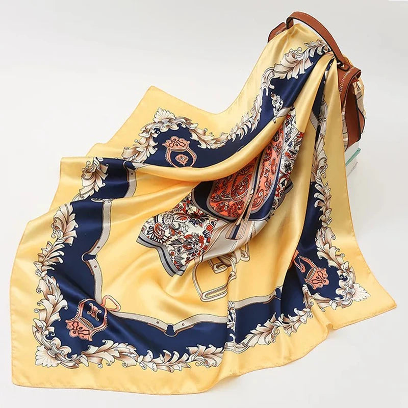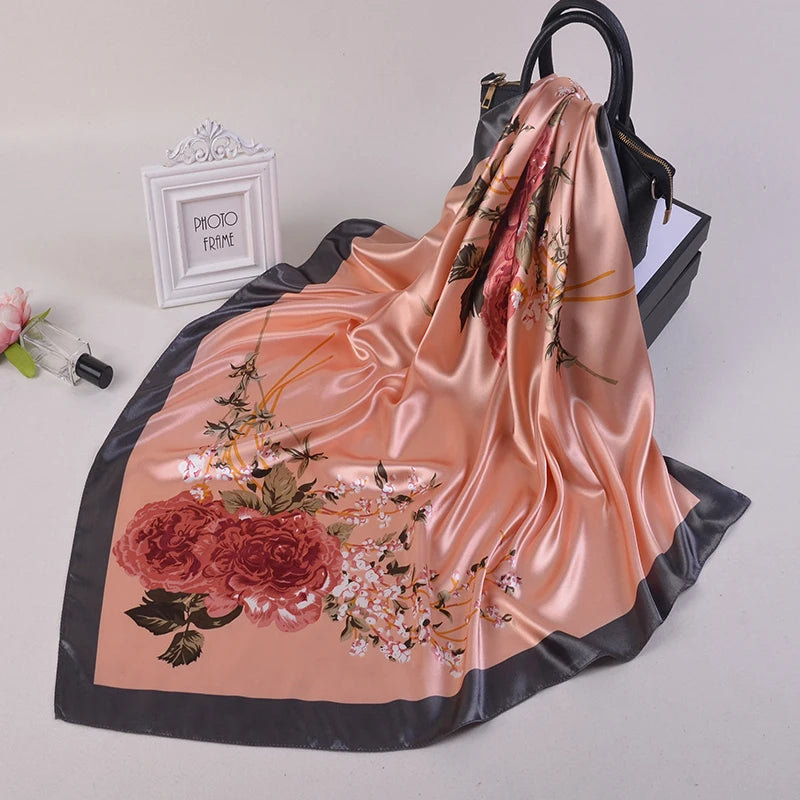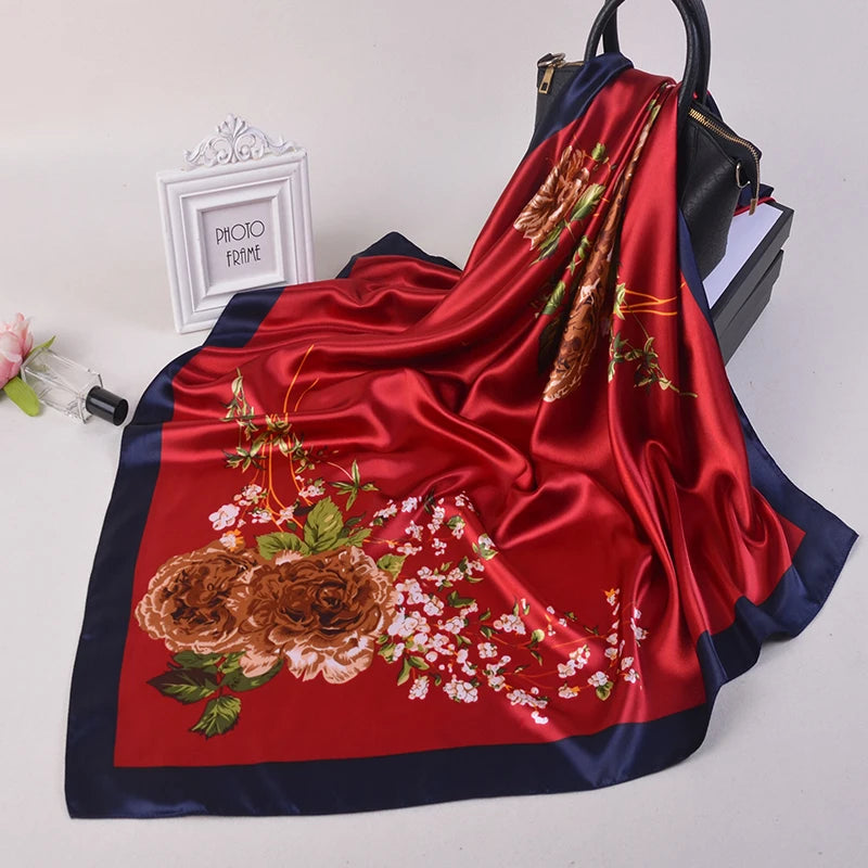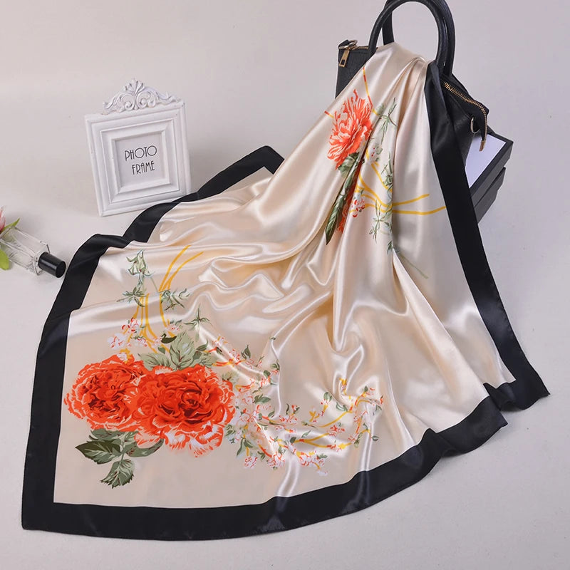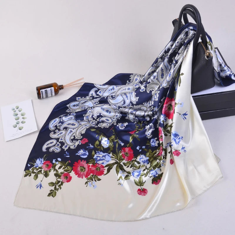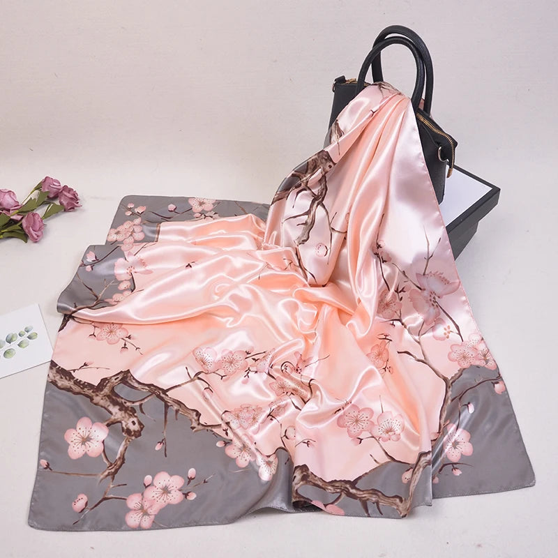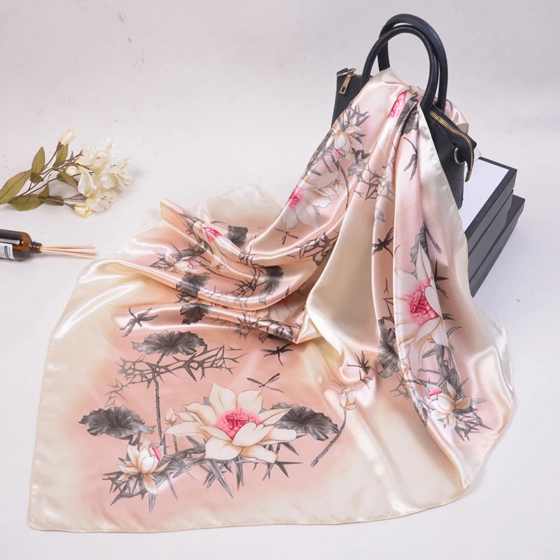90*90cm Silk Scarves Women fashion office lady Foulard Square Head girl Shawl Wrap Muffler Pareo Bandanna Female Chiffon Hijab