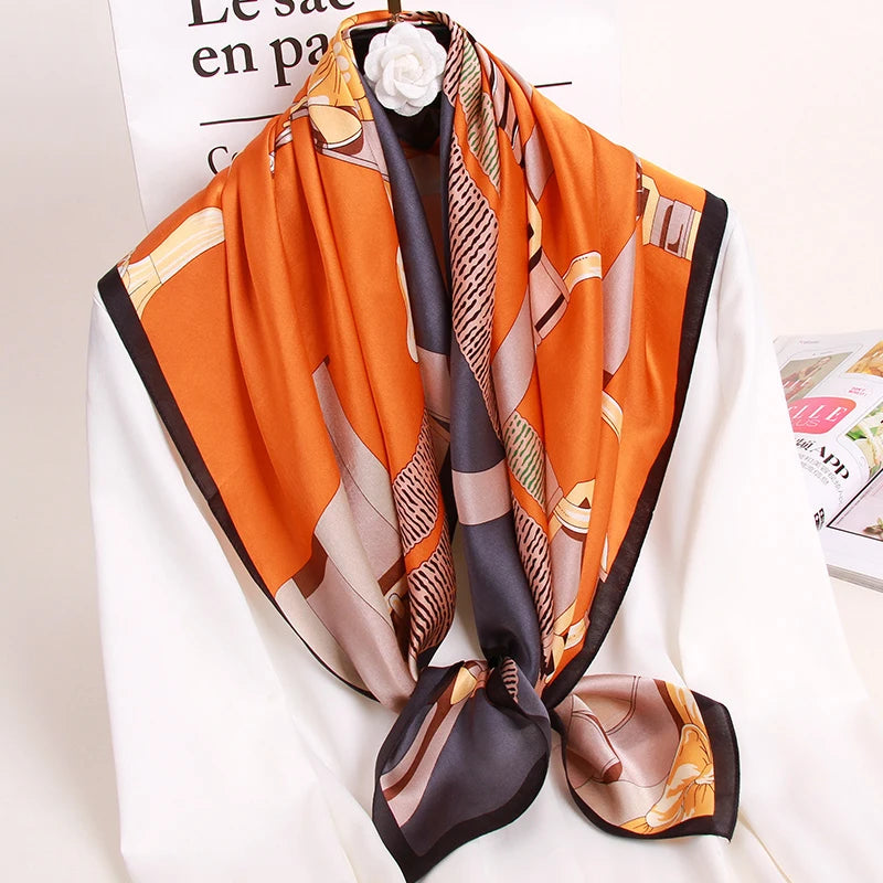 Women 100% Real Silk Square Scarf for Gift Hangzhou Pure Silk Neckscarf Wraps Christmas Day Present Square Silk Scarves Bandanas