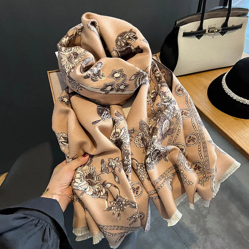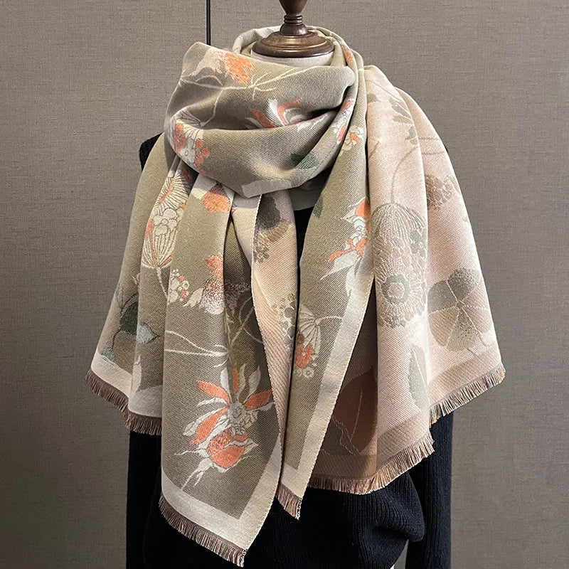 2023 Luxury Floral Print Scarf for Women Warmer Winter Cashmere Pashmina Scarves Shawls Female Thick Blanket Wraps Foulard