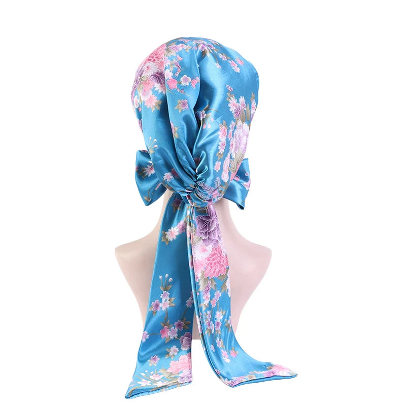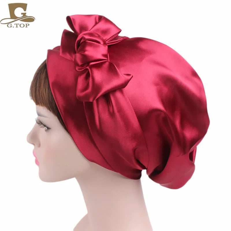 New Women silky satin night sleeping cap head wrap Bowknot Turban Pre Tied Fitted Bandana Chemo cap Nightcap hair loss patients
