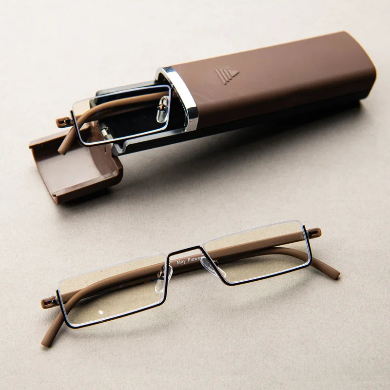 Blue light Blocking Reading Glasses for Men Metal Frame Readers Magnifier Presbyopia Lens Eyewear With Case +1.25+1.75+2.25 - brown / +400 is backordered and will ship as soon as it is back in stock.