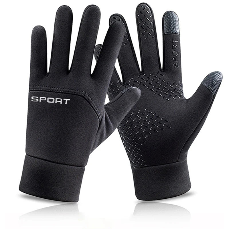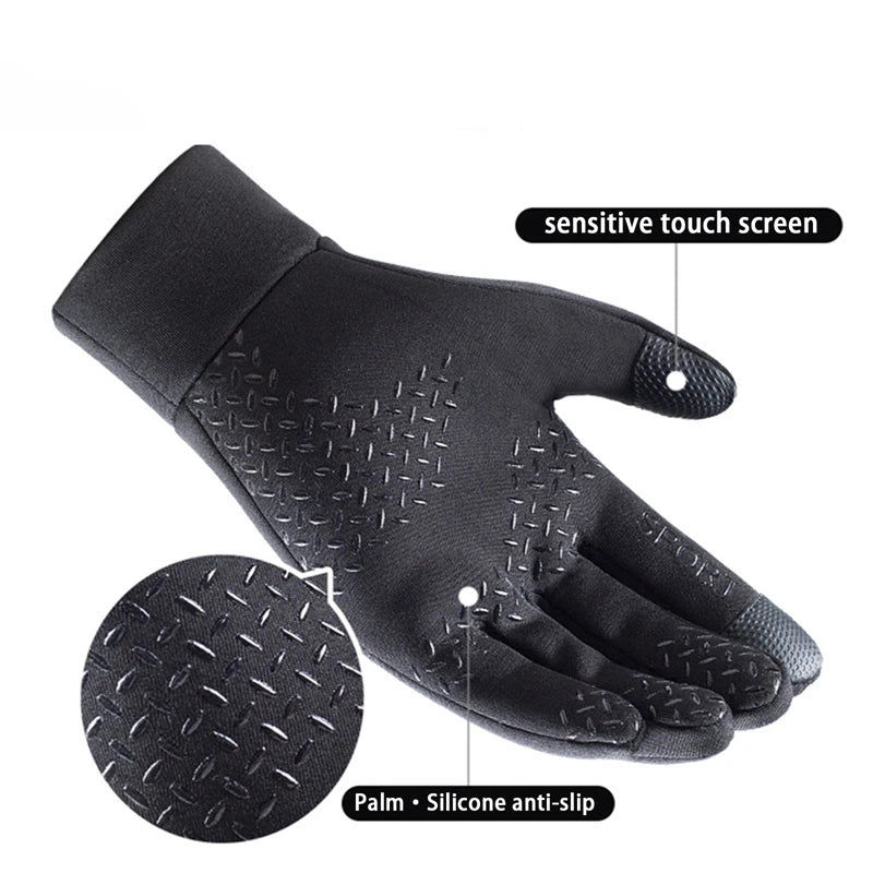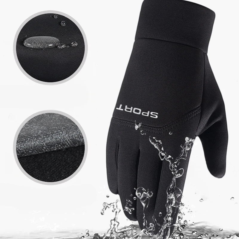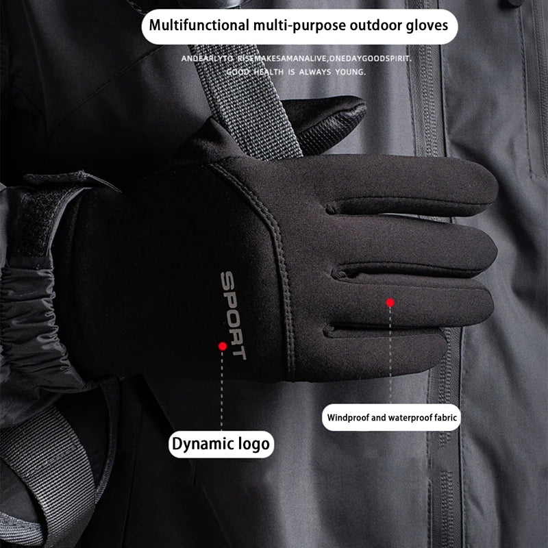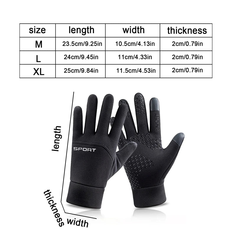 Men Windproof Motorcycle Gloves Outdoor Sports Ski Running Touch Screen Thin Style Fleece Gloves Non-Slip Warm Full Fingers