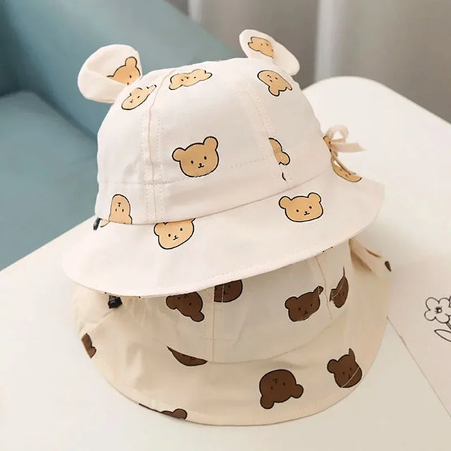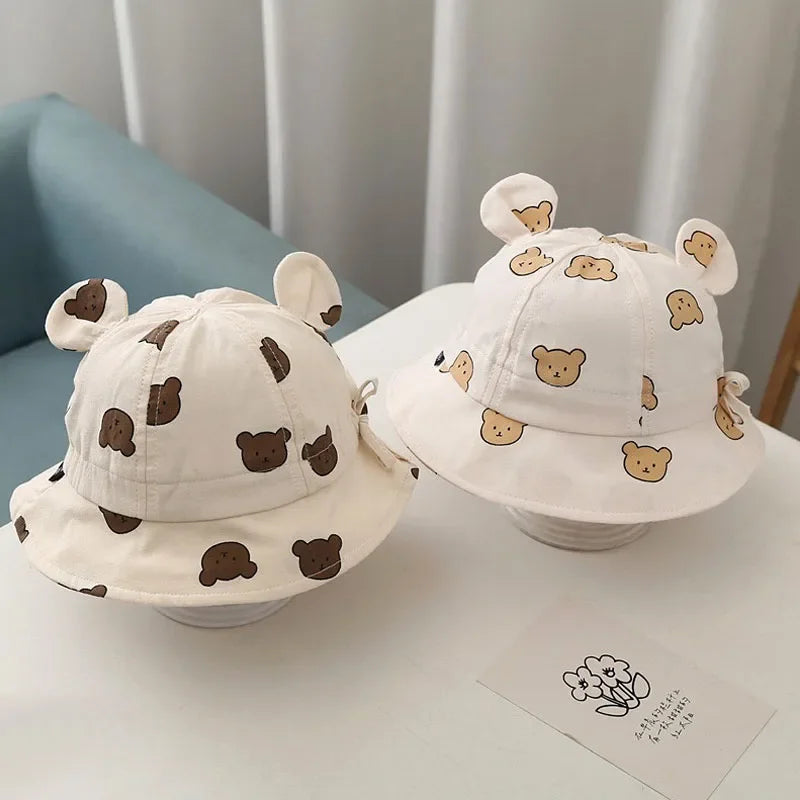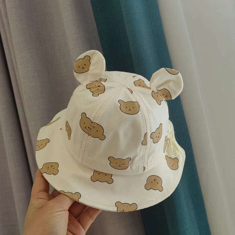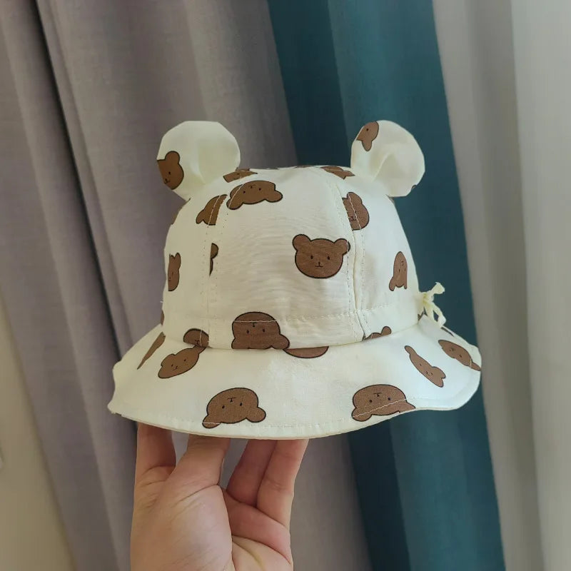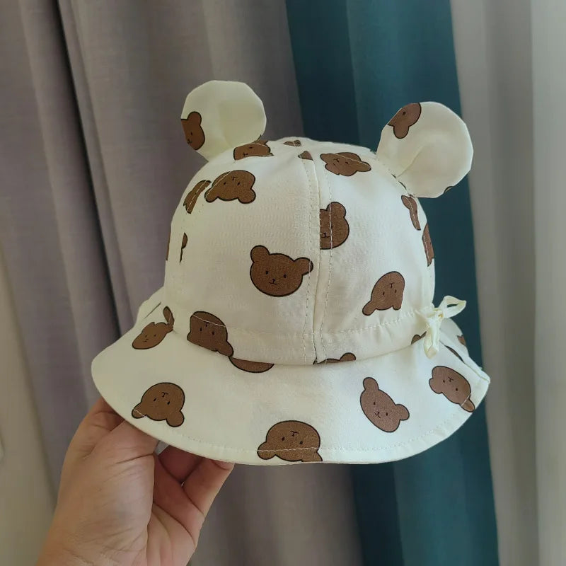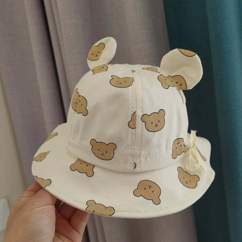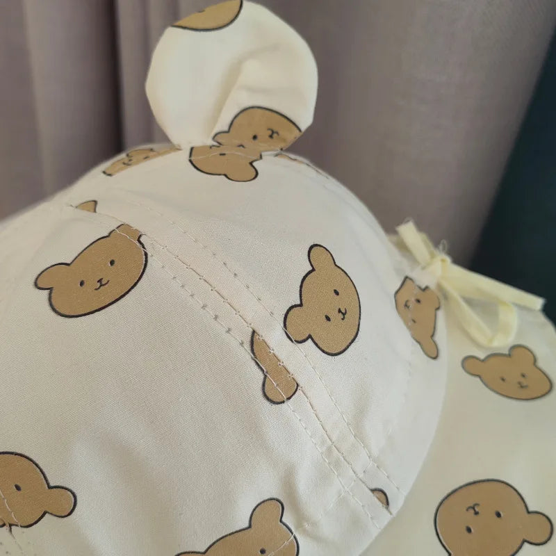 Korea Cotton Baby Bucket Hat with Ears Boys Girls Cute Cartoon Bear Breathable Sun Fisherman's Hat Kids Outdoor Child Panama Cap