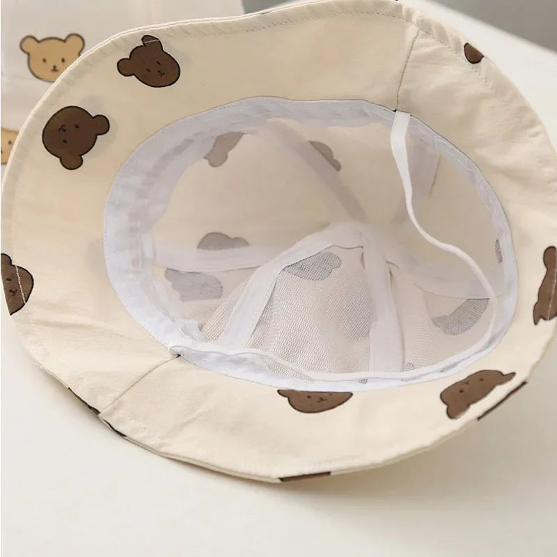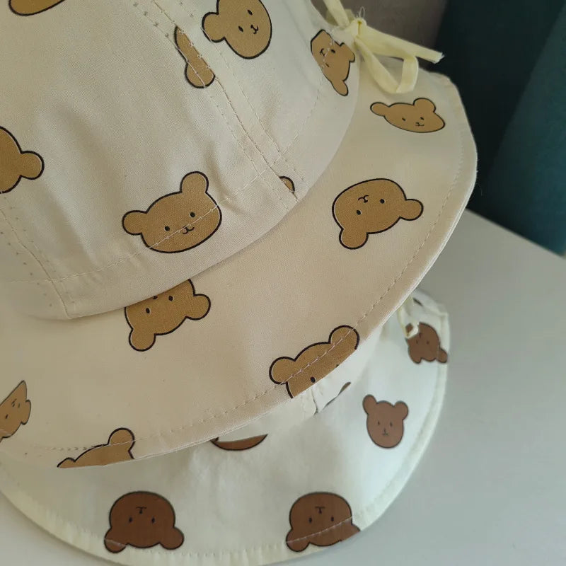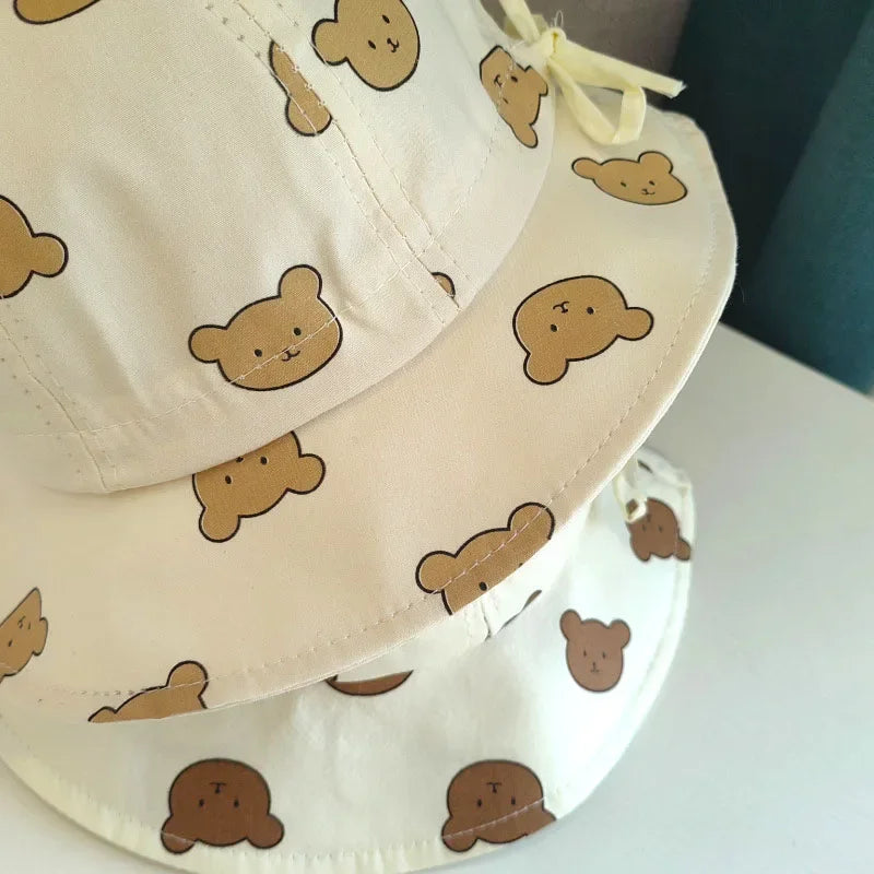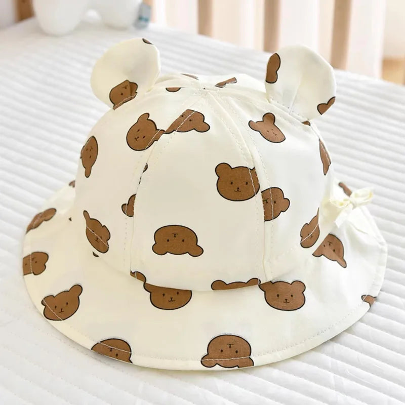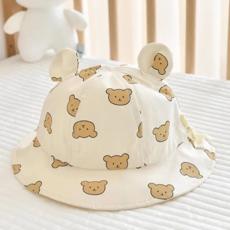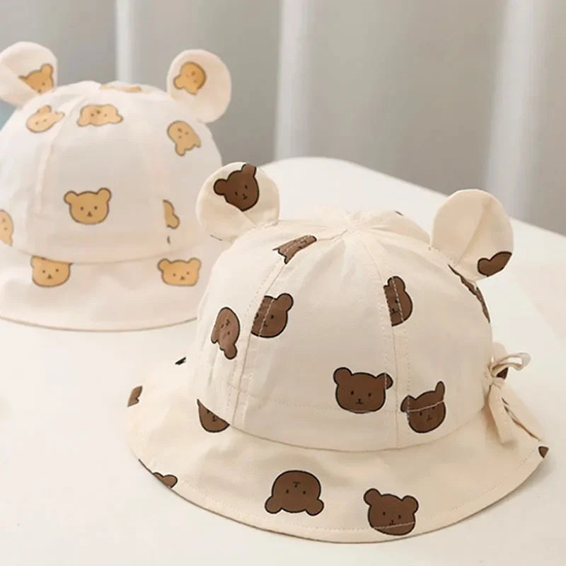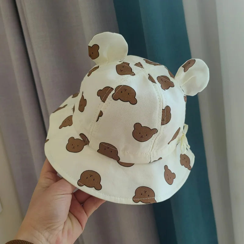 Korea Cotton Baby Bucket Hat with Ears Boys Girls Cute Cartoon Bear Breathable Sun Fisherman's Hat Kids Outdoor Child Panama Cap