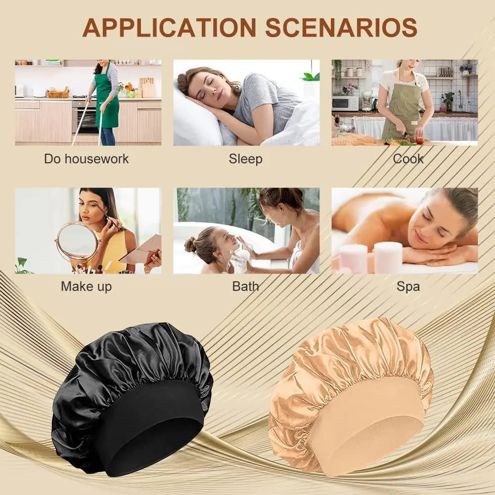 High Elastic Satin Solid Wide-brimmed Sleeping Hat Unisex Head Wrap Elastic Band Cap Hair Care Bonnet Night Sleeping Hat - Hair Rope Black / One Size is backordered and will ship as soon as it is back in stock.