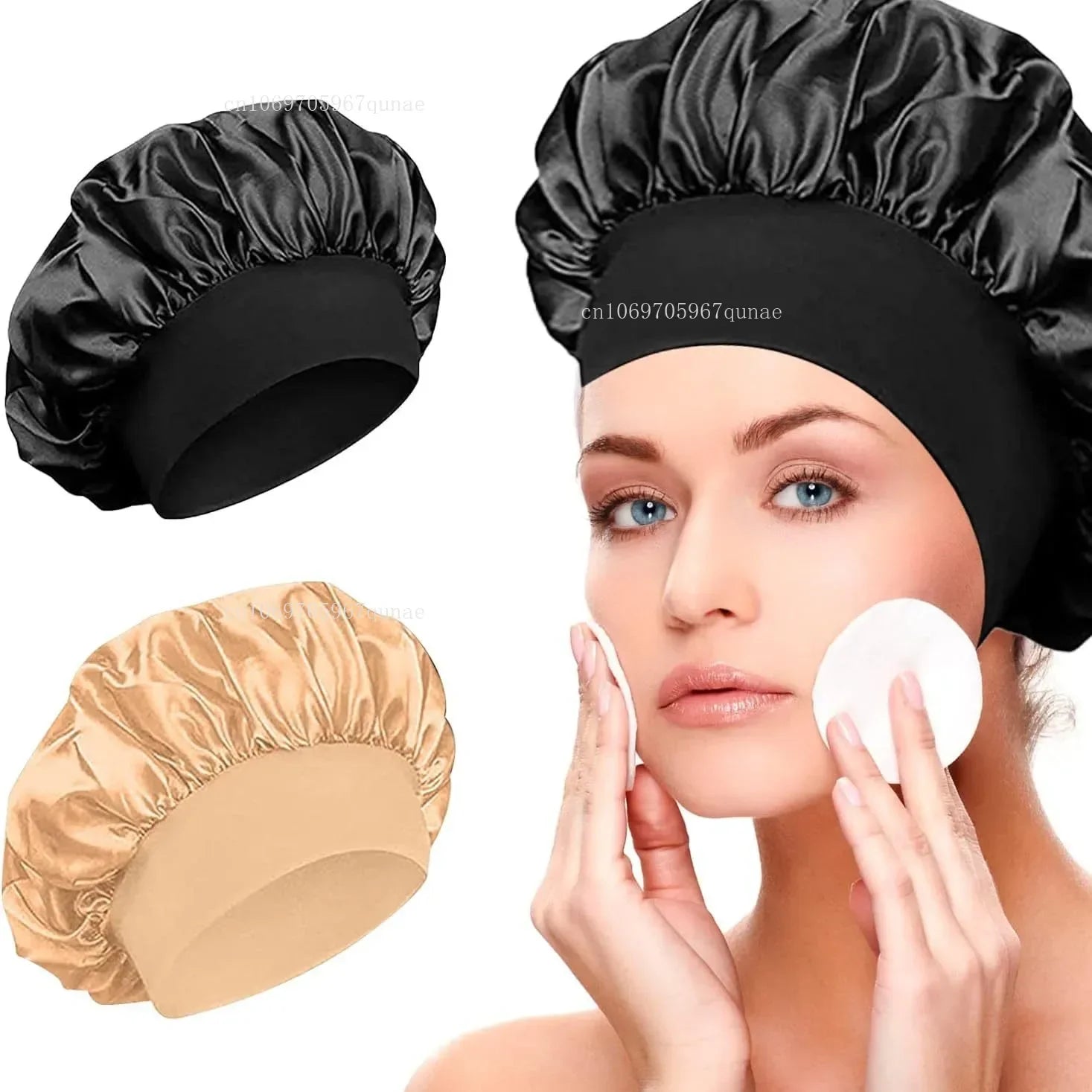 High Elastic Satin Solid Wide-brimmed Sleeping Hat Unisex Head Wrap Elastic Band Cap Hair Care Bonnet Night Sleeping Hat