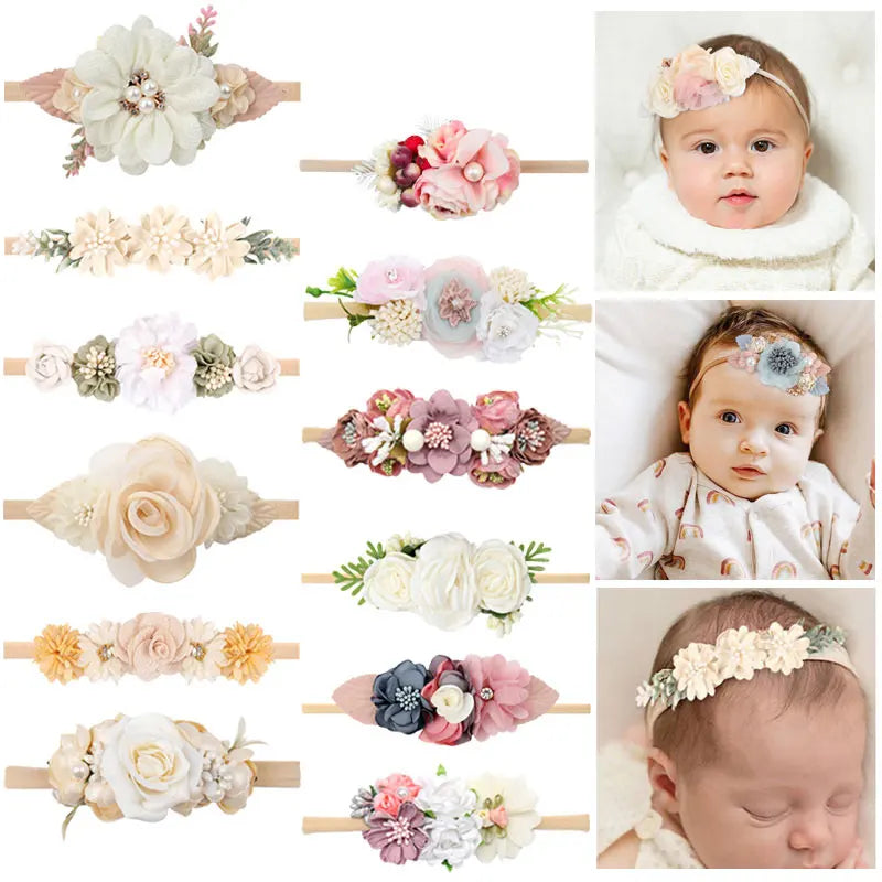 Baby Headband Flowers For Girls Cute Elastic Floral Hair Bands Newborn Toddler Headwear Nylon Headbands Kids Hair Accessories