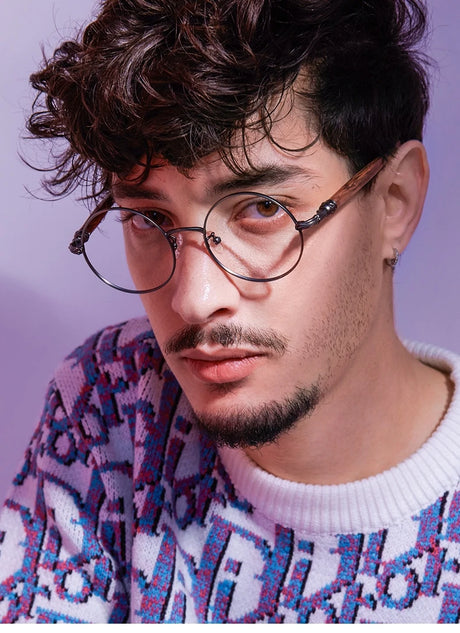 Japanese fashion eyeglass frame with circular frames made of pure titanium for both men and women