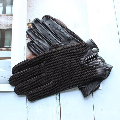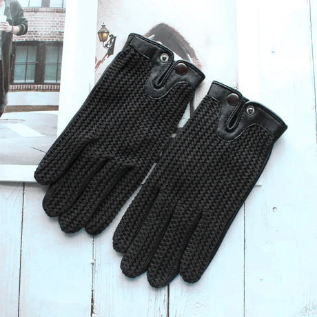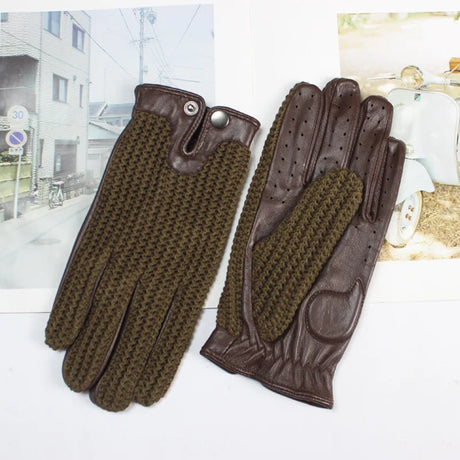 New Men's Leather Driving Anti-Slip Gloves Touch Screen Knitted Riding Motorcycle Gloves Sheepskin