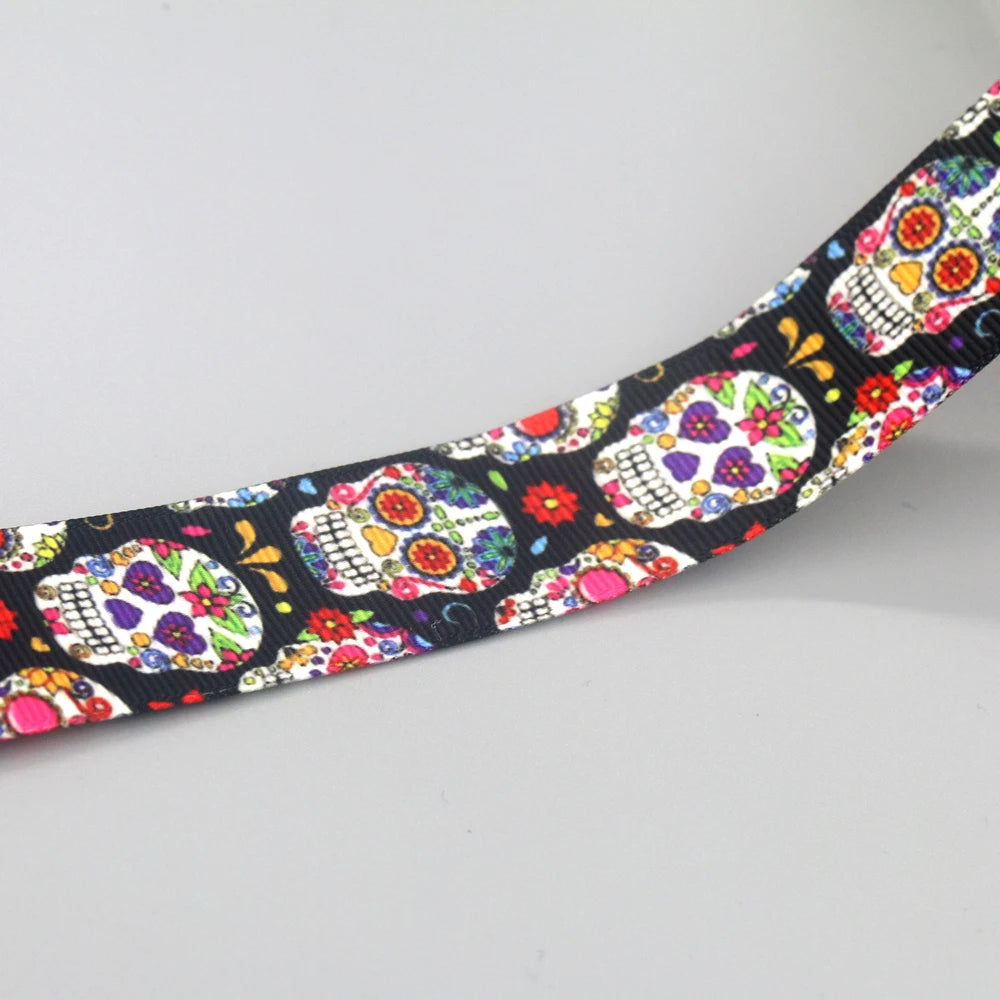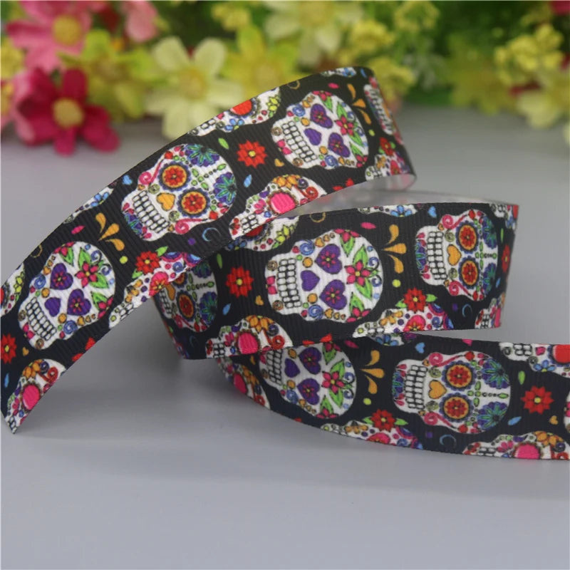 DHK 7/8'' 5yards Skull Printed Grosgrain Ribbon Accessories Material Headwear Decoration DIY Sewing Craft C2060