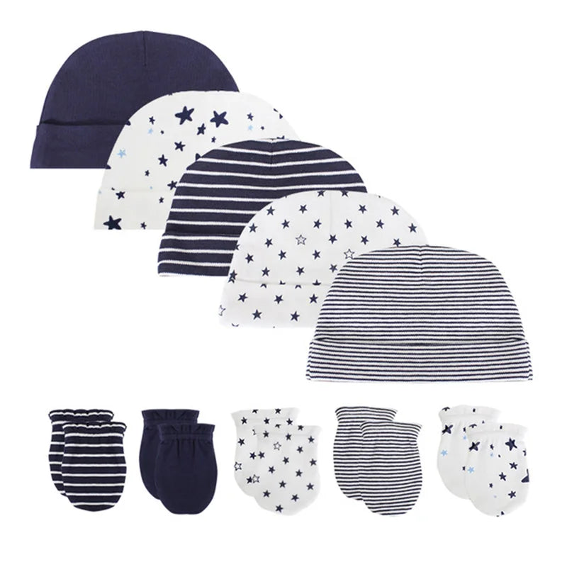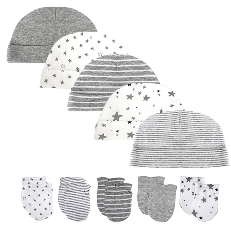 2022 Unisex Baby Hats+Gloves Headwear Cotton Solid Newborn Nightcap Fitted Baby Boys Girls Sets Print Cartoon Baby Accessories