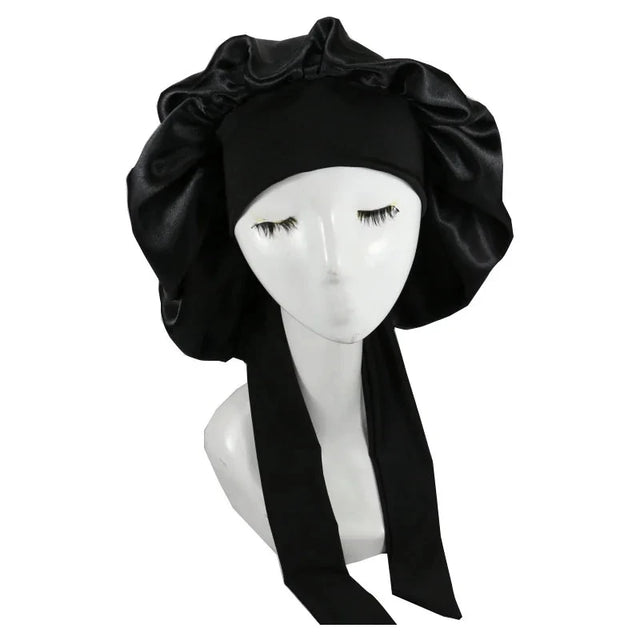 Skin-friendly satin performs more breathable and elastic,the long satin bonnet is appropriate for most head size ,the elastic wide band ensures its snug fit,will not leave mark or slip off.