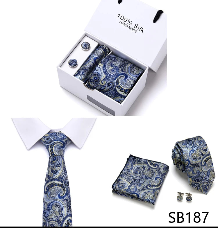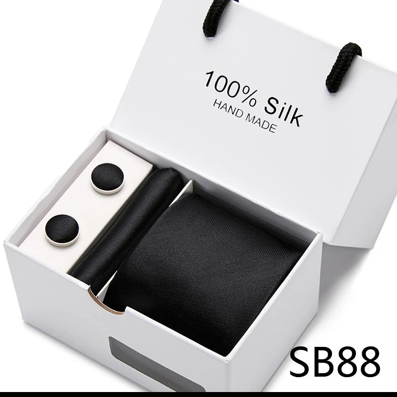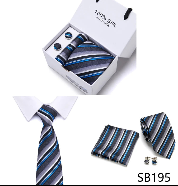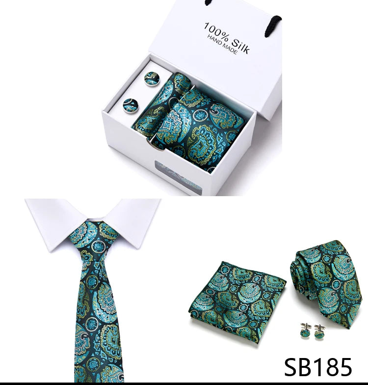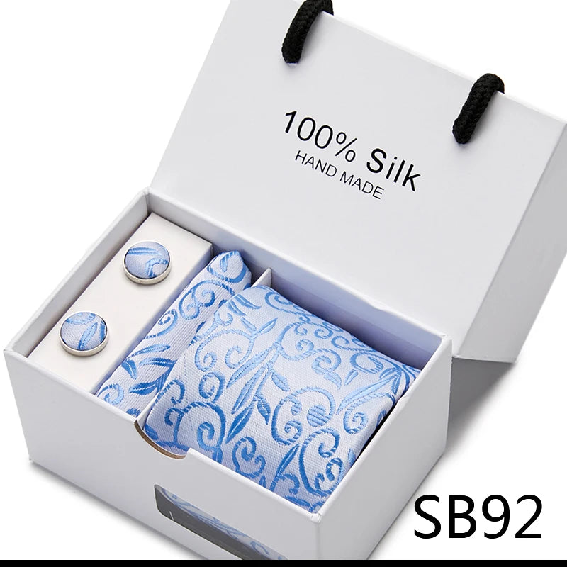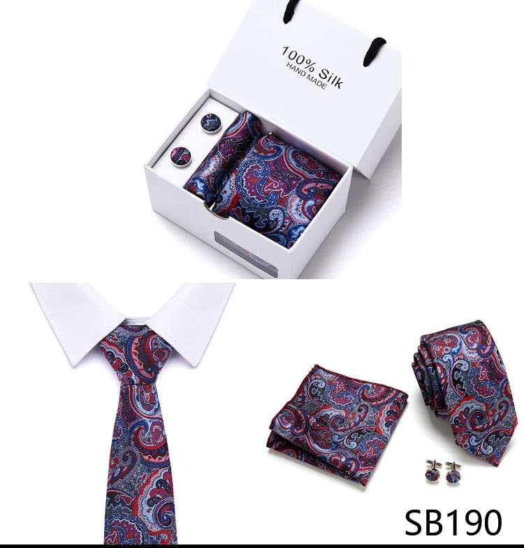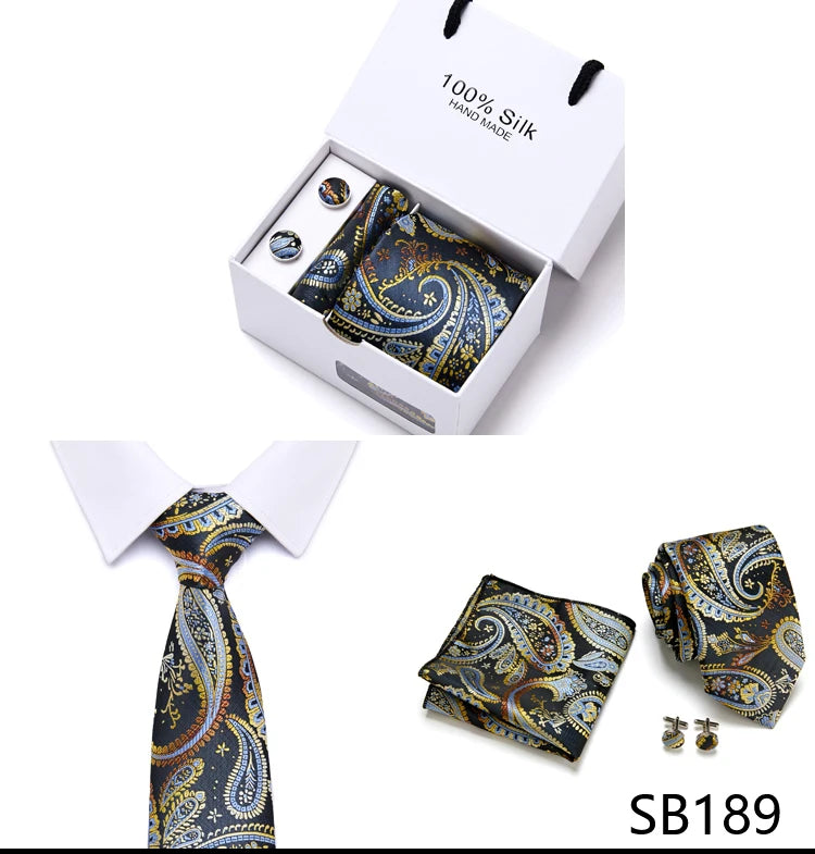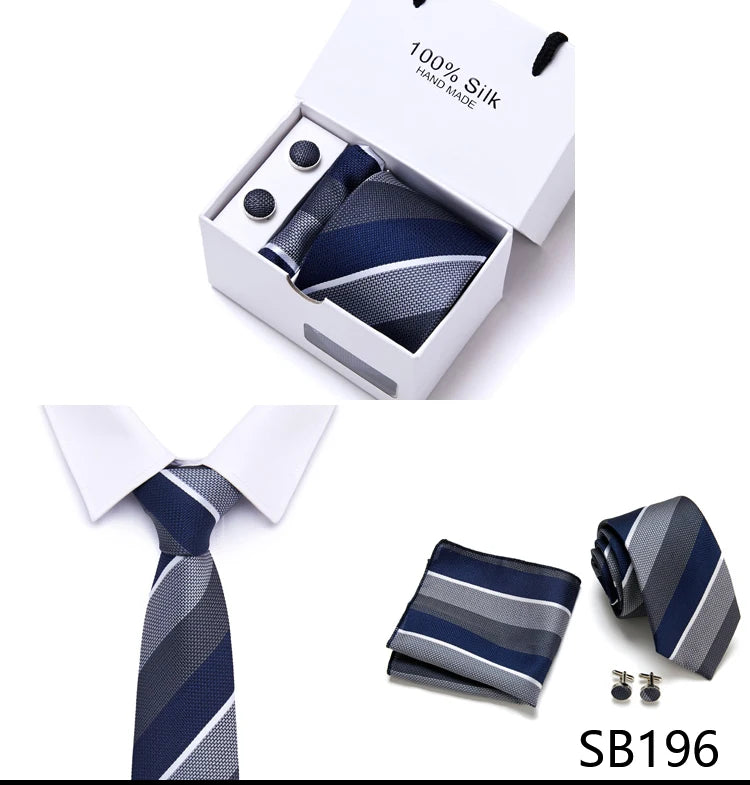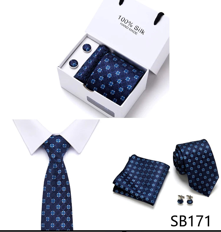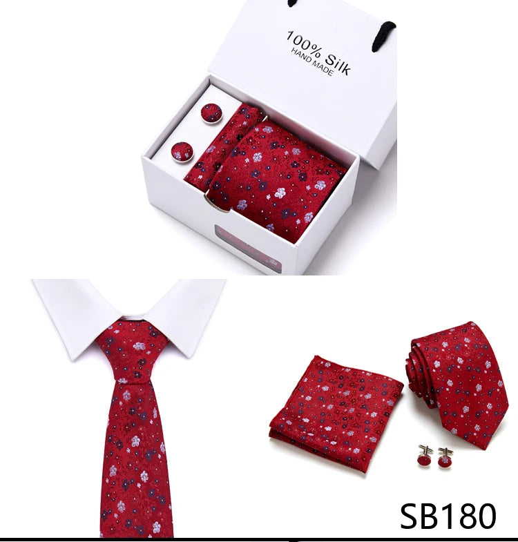 Brand 100% Silk Ties Gift box Office Men Classic Party Wedding striped 7.5cm Silk Wedding Floral Tie Necktie Handkerchief Set