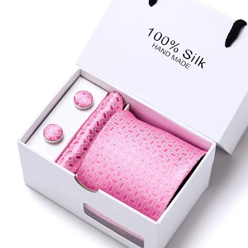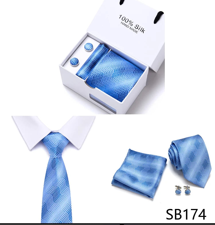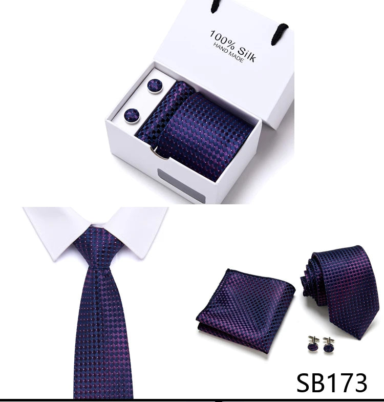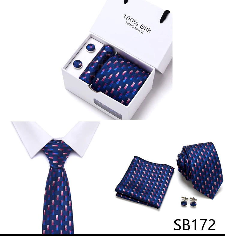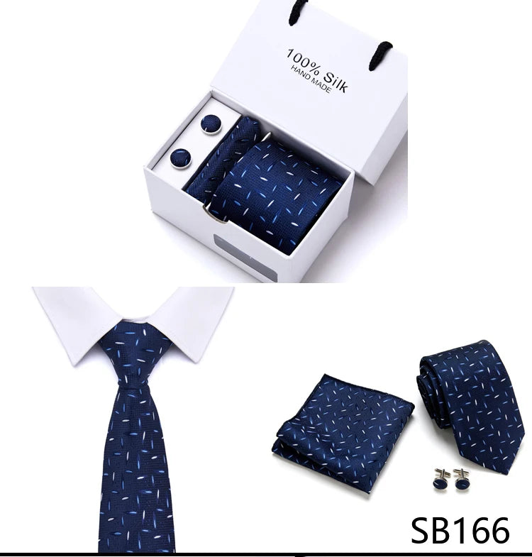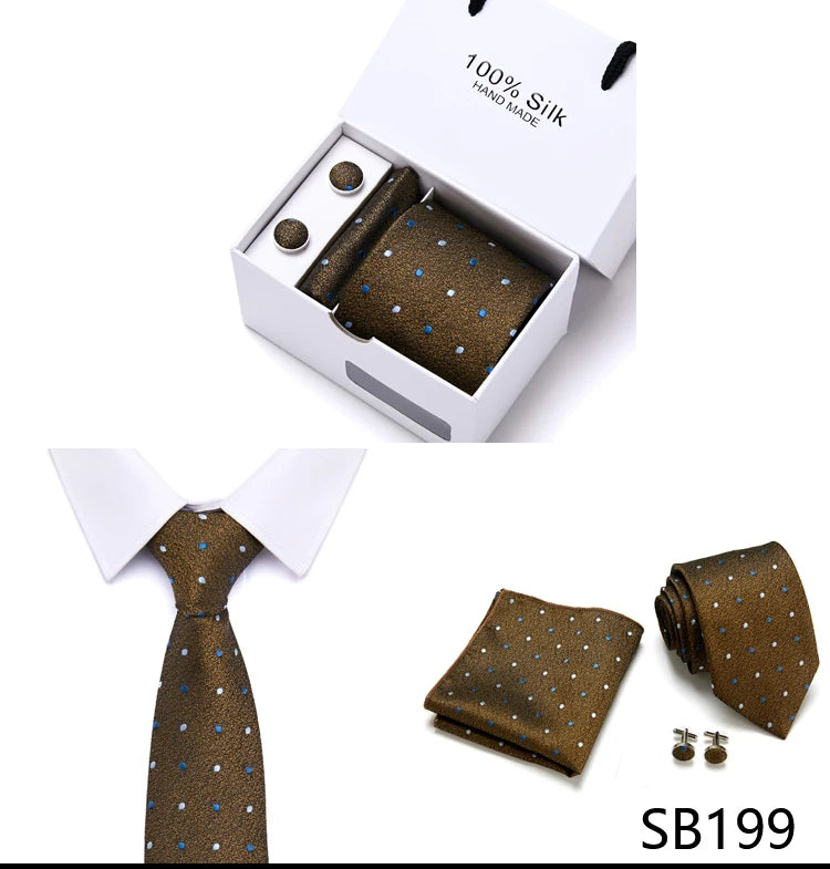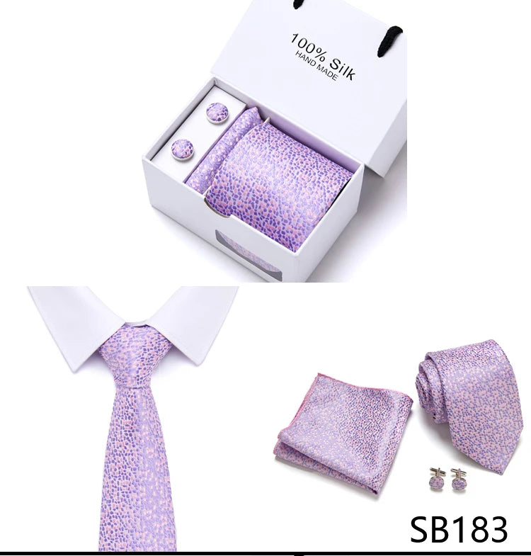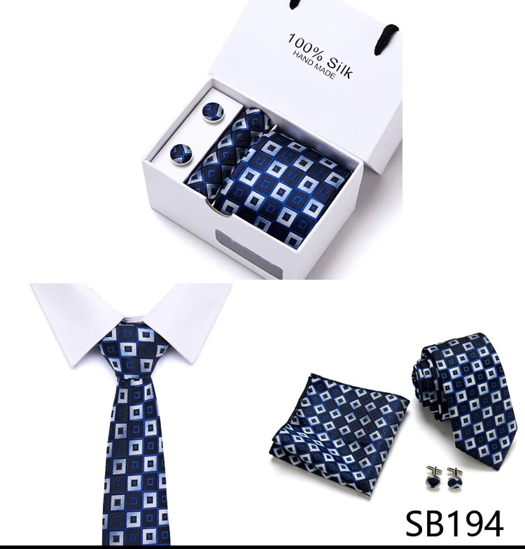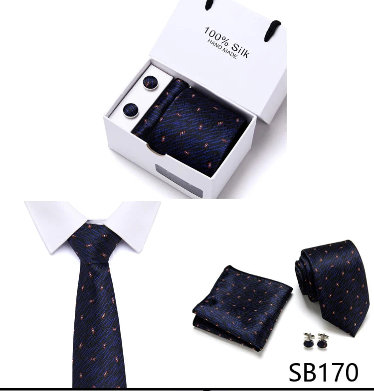 Brand 100% Silk Ties Gift box Office Men Classic Party Wedding striped 7.5cm Silk Wedding Floral Tie Necktie Handkerchief Set