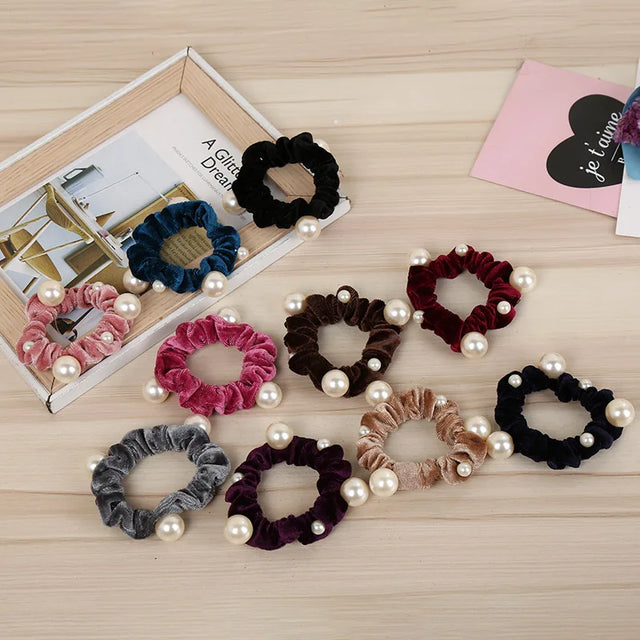New Women arrival Velvet pearl Elastic Hair Ropes Scrunchies Girls' No Crease Hair Ties Women Hair Accessories