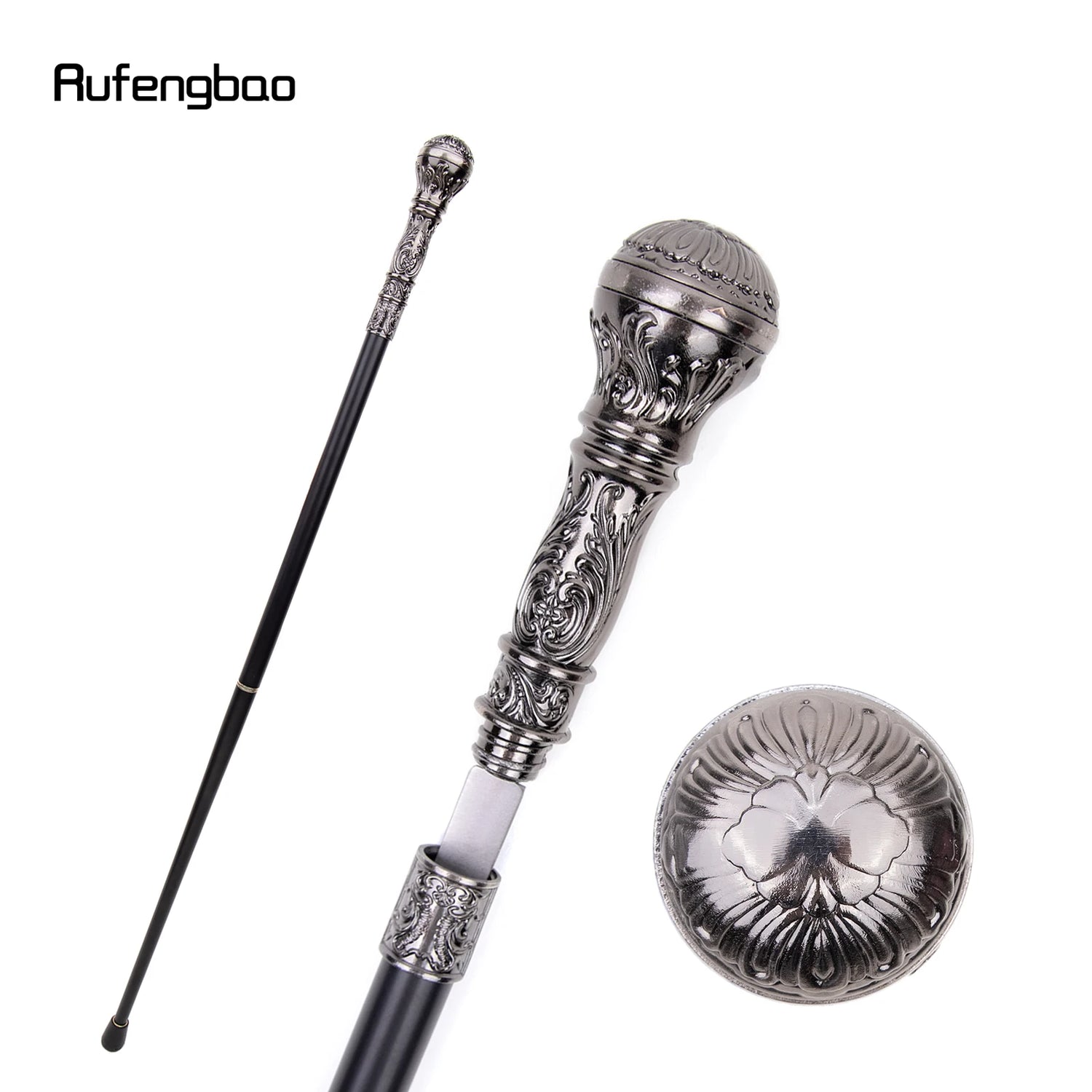 Silver Luxury Round Handle Walking Stick with Hidden Plate Self Defense Fashion Cane Plate Cosplay Crosier Stick 93cm - Sword Length 16cm is backordered and will ship as soon as it is back in stock.