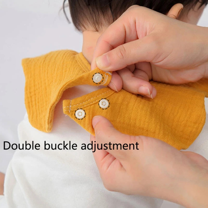 This bib is specially designed for babies. The shape of the bibs fits the baby's neck more closely to care for the baby's health.