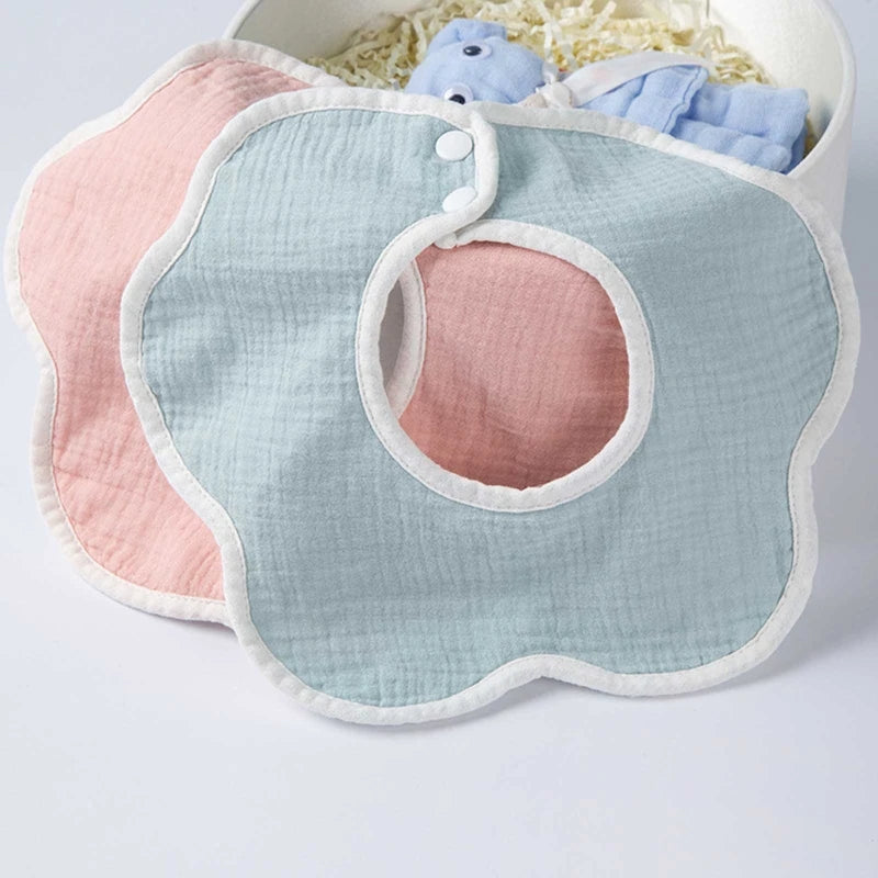 Solid Colour Flower Shape Baby Bib Flower Shape Cotton Gauze Muslin Newborn Feeding Burp Cloth Baby Girl Boy Saliva Towel Scarf